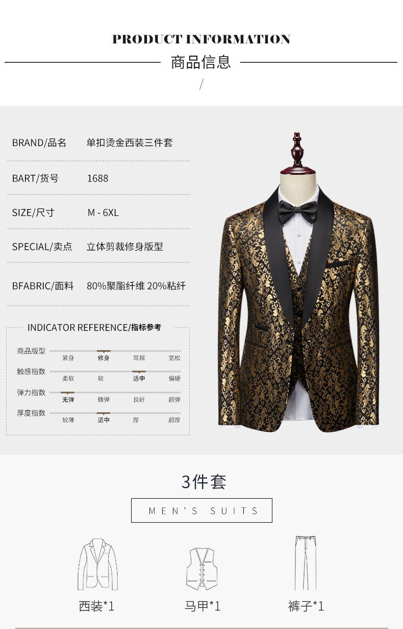 Traje de hombre cruzado de comercio exterior 2023 traje de hombre coreano juvenil dorado slim moda traje de banquete traje de tres piezas