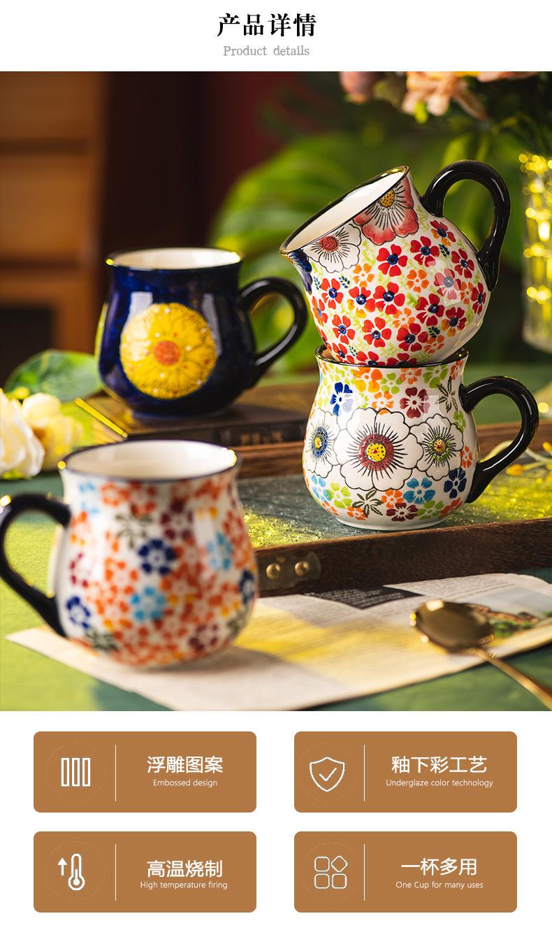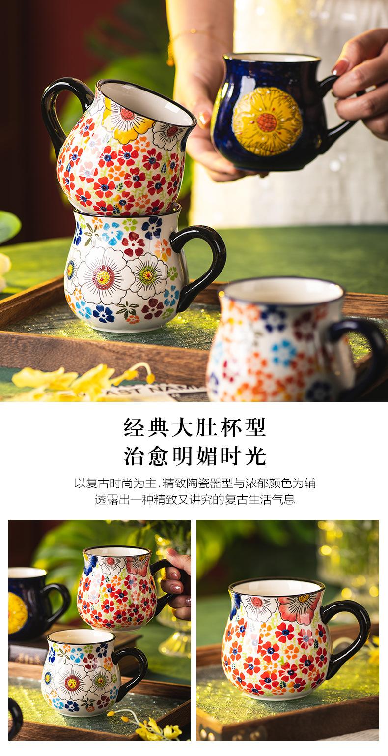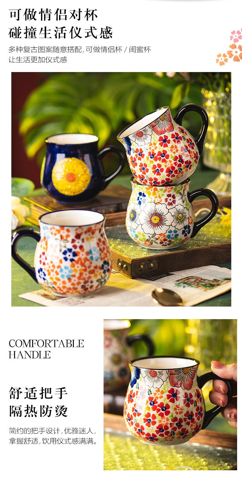 Taza pintada a mano taza creativa para agua taza de cerámica para desayuno de oficina taza retro para el hogar taza para pareja taza de café venta al por mayor