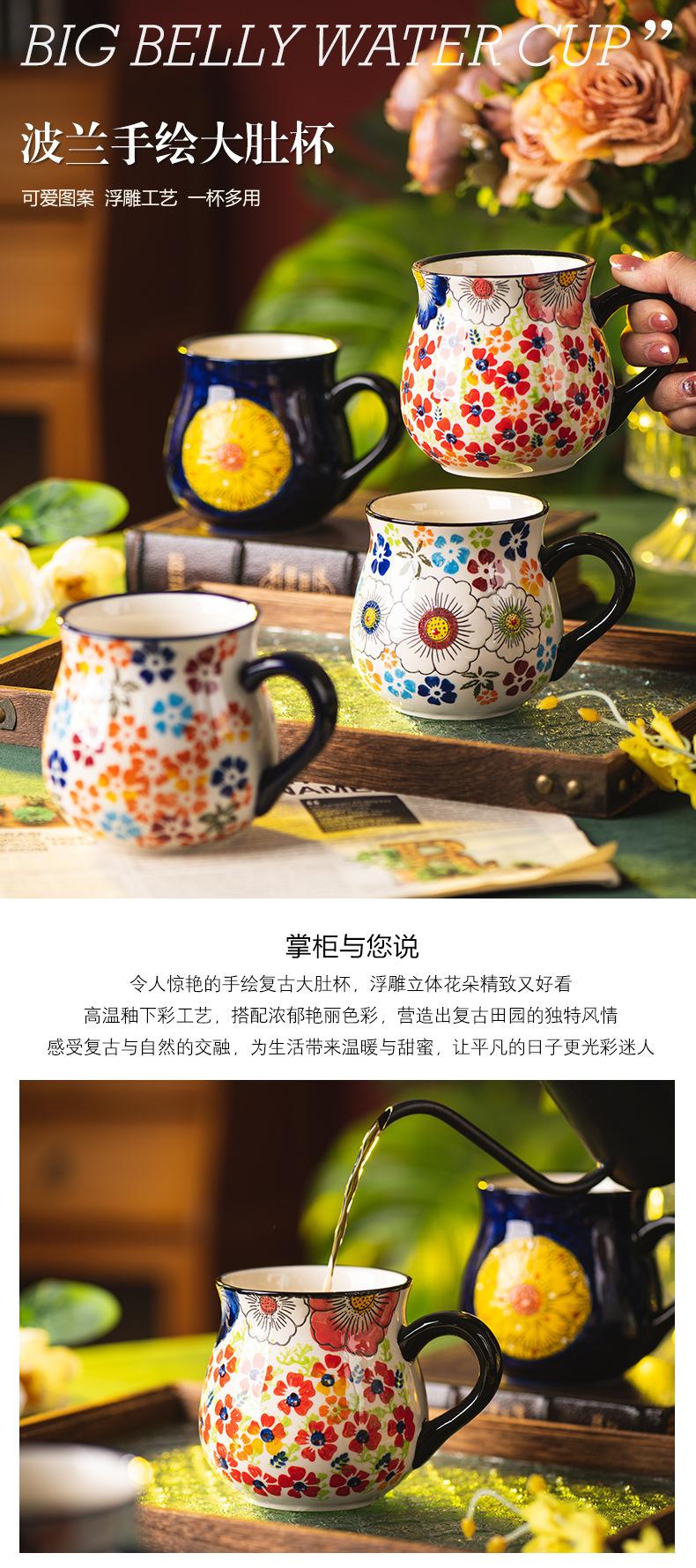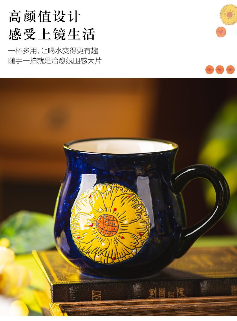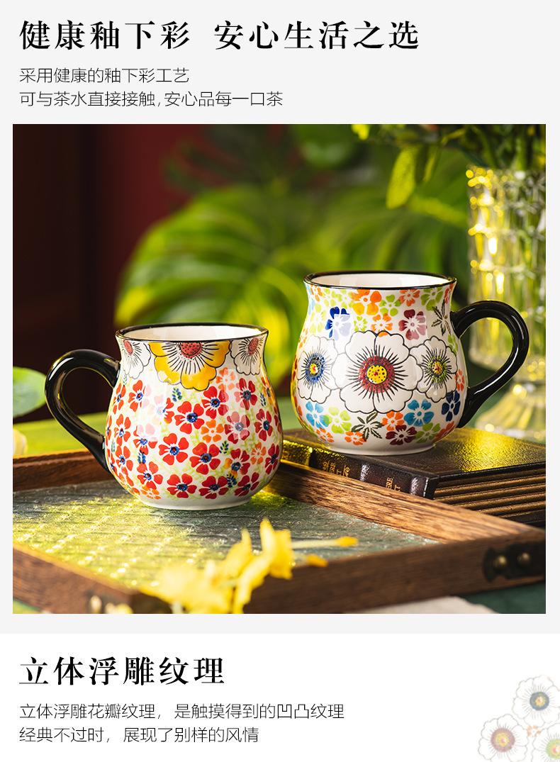 Taza pintada a mano taza creativa para agua taza de cerámica para desayuno de oficina taza retro para el hogar taza para pareja taza de café venta al por mayor