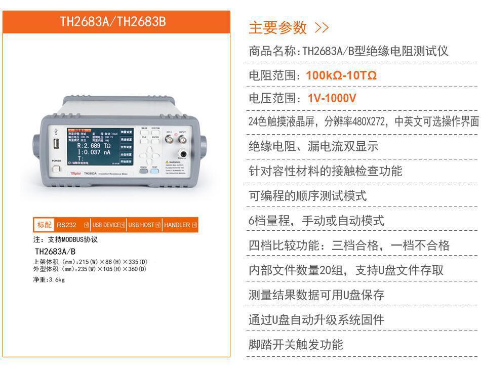 Tonghui TH2683/TH2683A/TH2683B Probador Digital de Resistencia de Aislamiento Megóhmetro Mesa Vibratoria