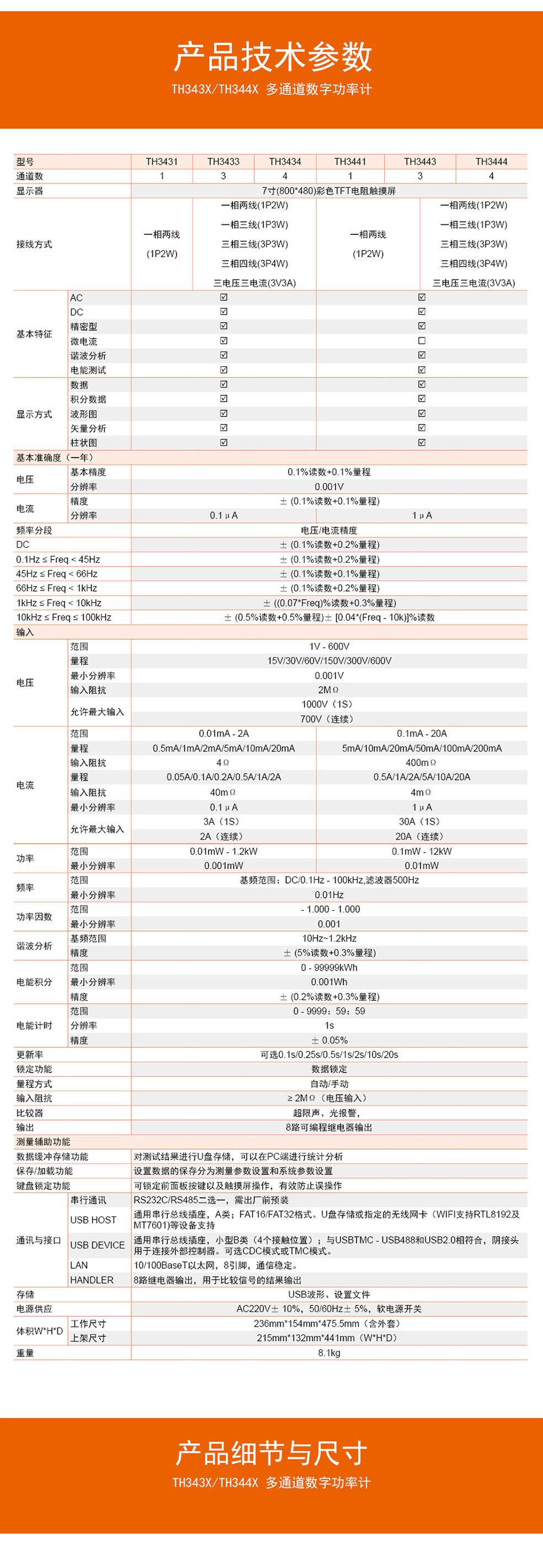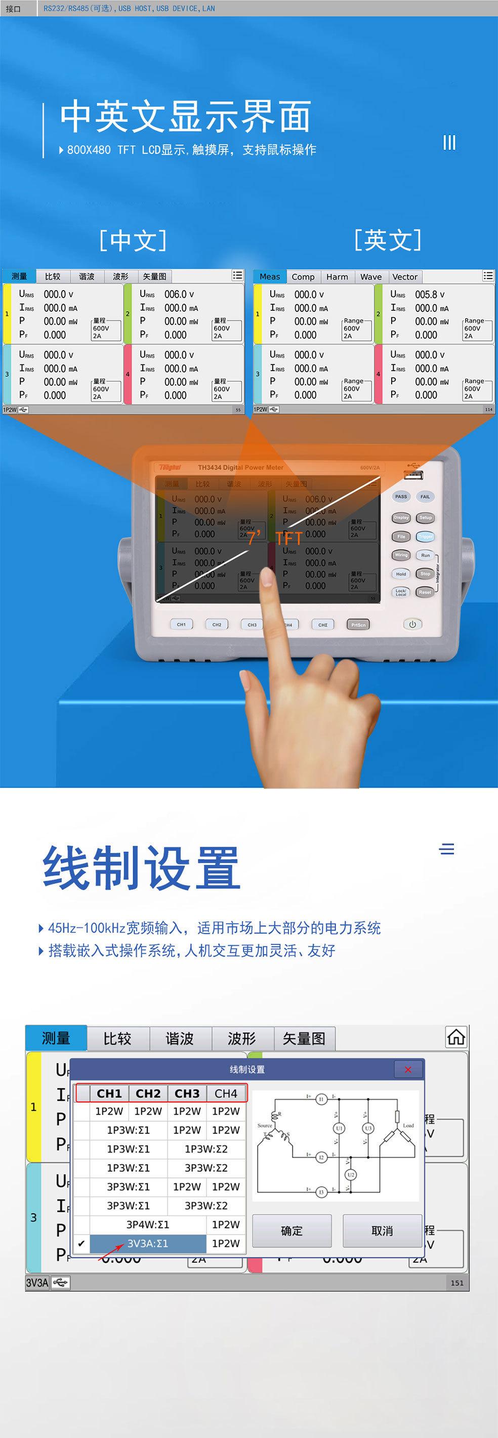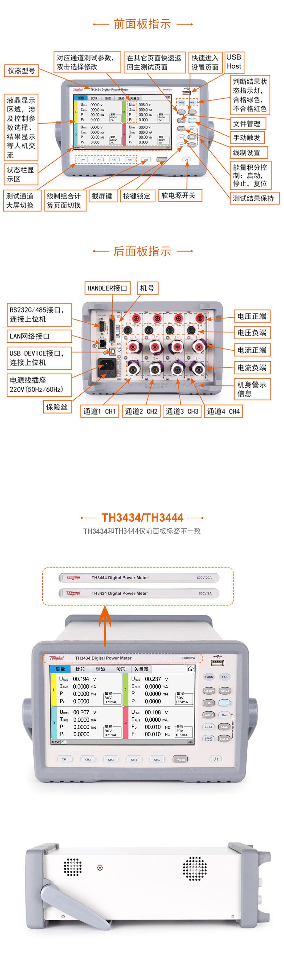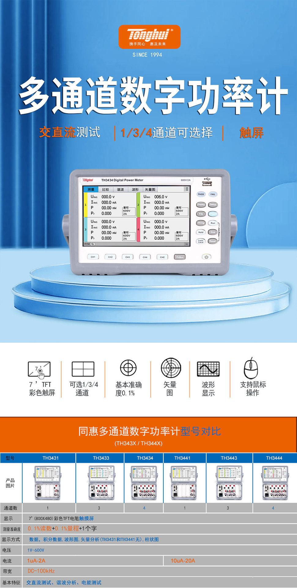 Medidor de potencia digital multicanal Tonghui TH3421/TH3443 probador de parámetros eléctricos TH3431/TH3444