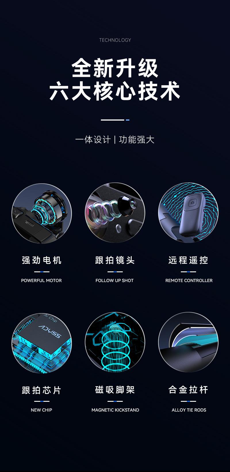 Gimbal Inteligente con Estabilización y Seguimiento, Palo Selfie, Soporte para Teléfono Móvil, Transmisión en Vivo, Nuevo Seguimiento Facial con Rotación de 360 Grados