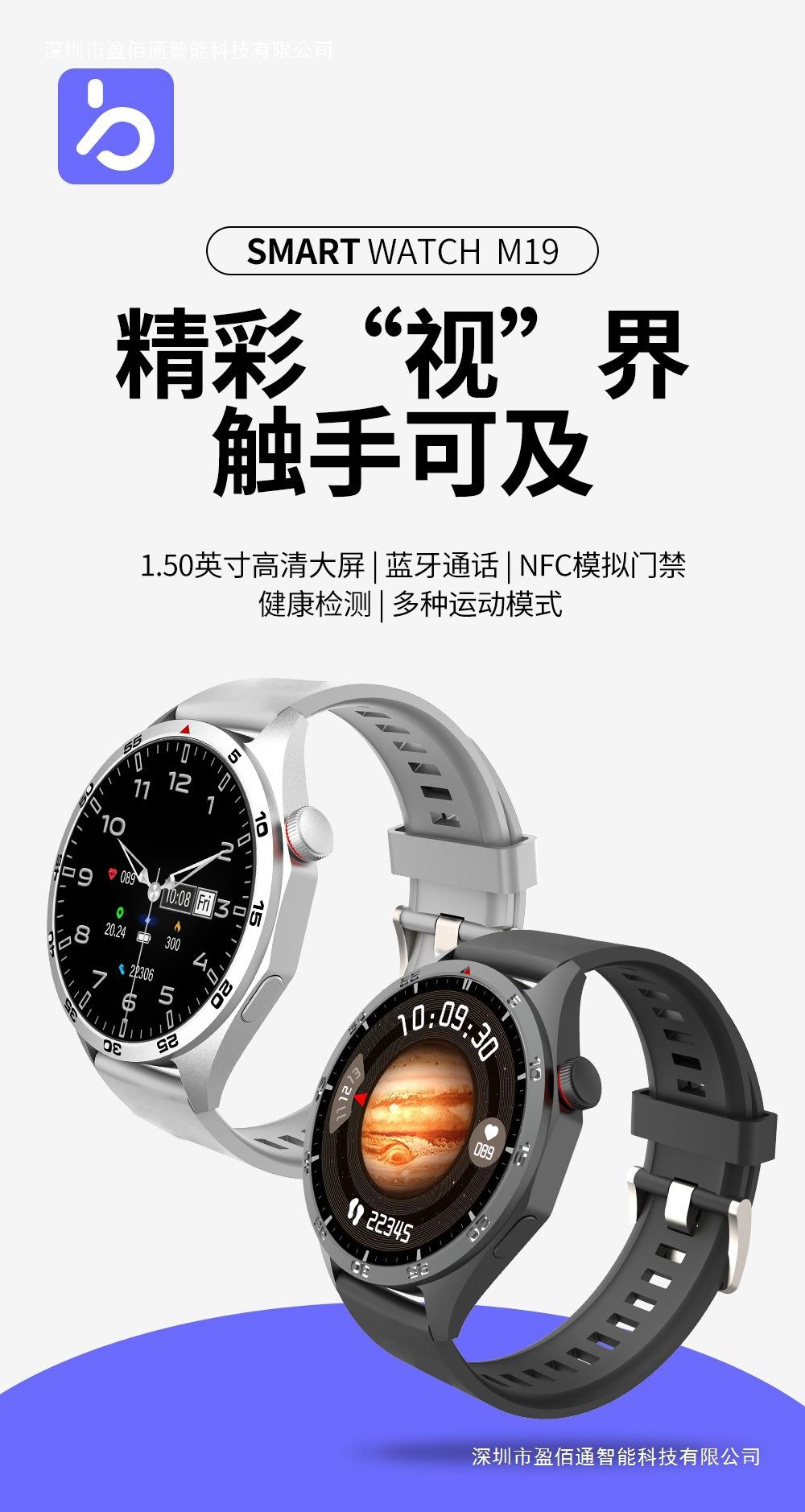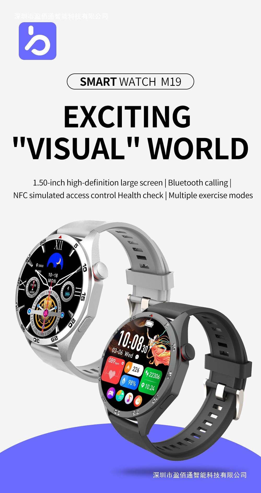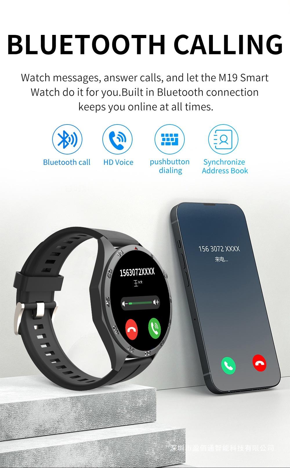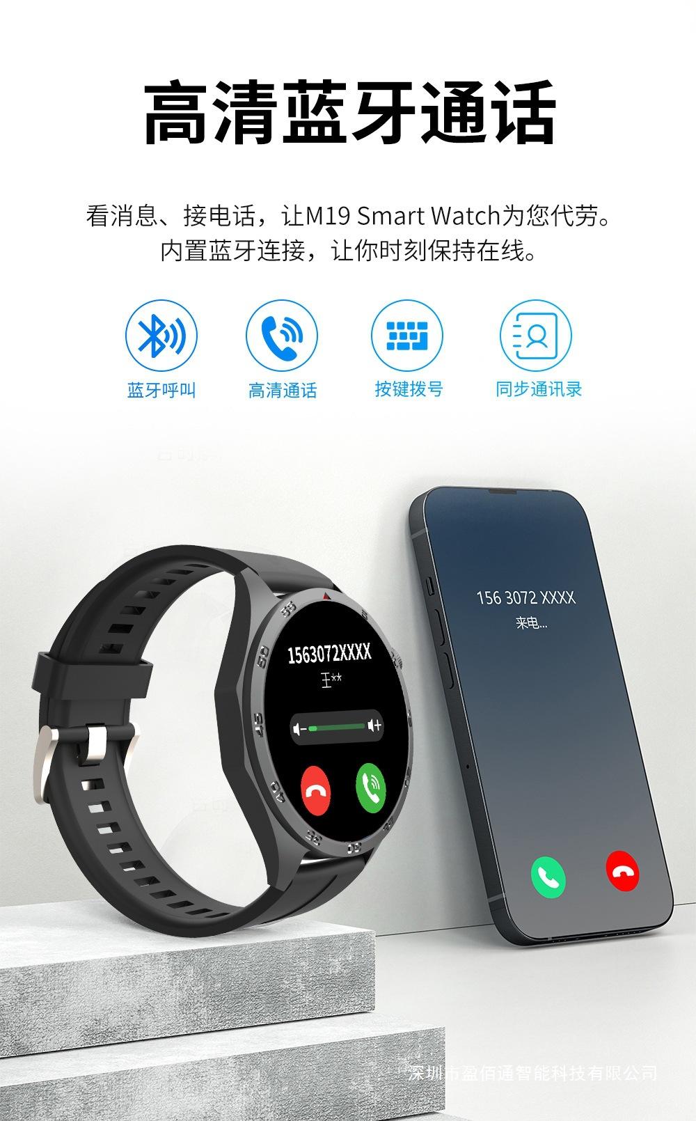 Nuevo reloj inteligente M19 transfronterizo llamada Bluetooth frecuencia cardíaca oxígeno en sangre presión arterial monitoreo del sueño reloj multifunción resistente al agua