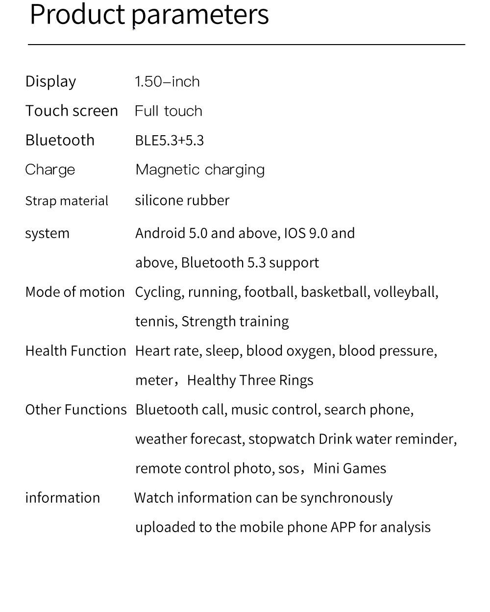Waterproof, Take photos, Step counting, Heart rate monitoring, Blood pressure measurement, Social entertainmen...