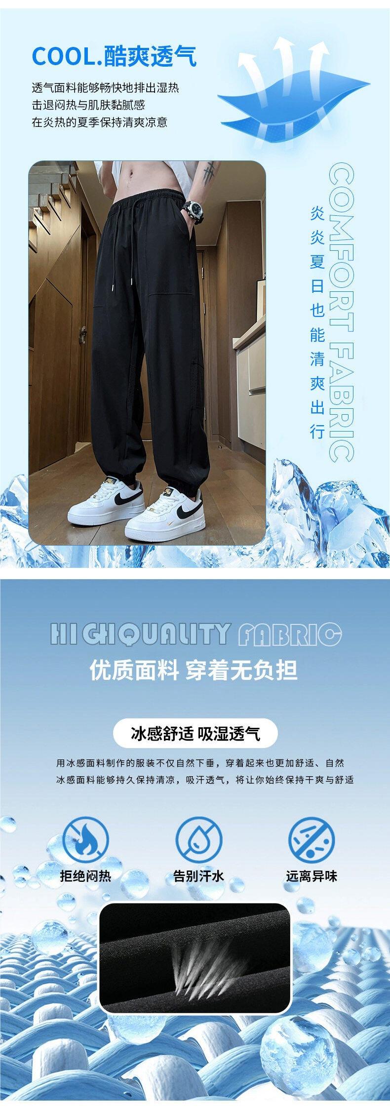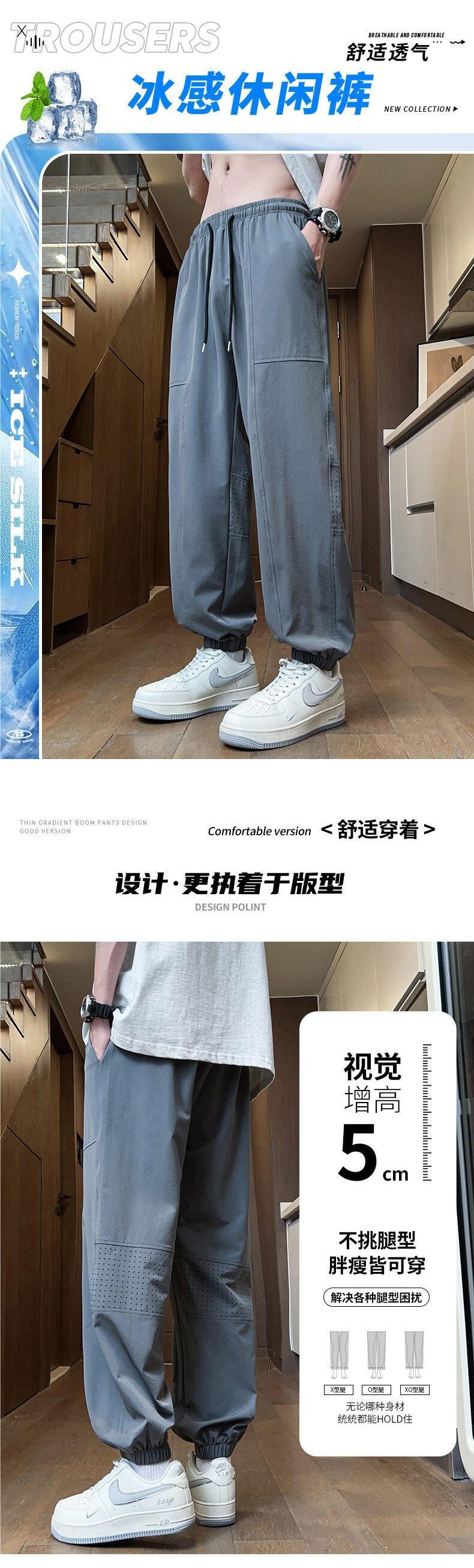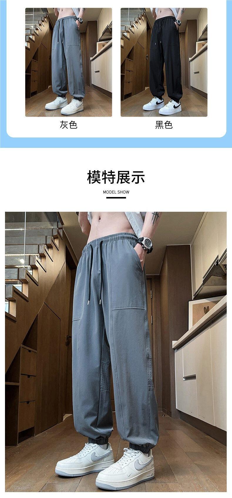 Pantalones de Malla de Seda de Hielo de Verano Delgados de Secado Rápido Pantalones Deportivos Nueve Puntos Juventud Talla Grande Pantalones Casuales 23