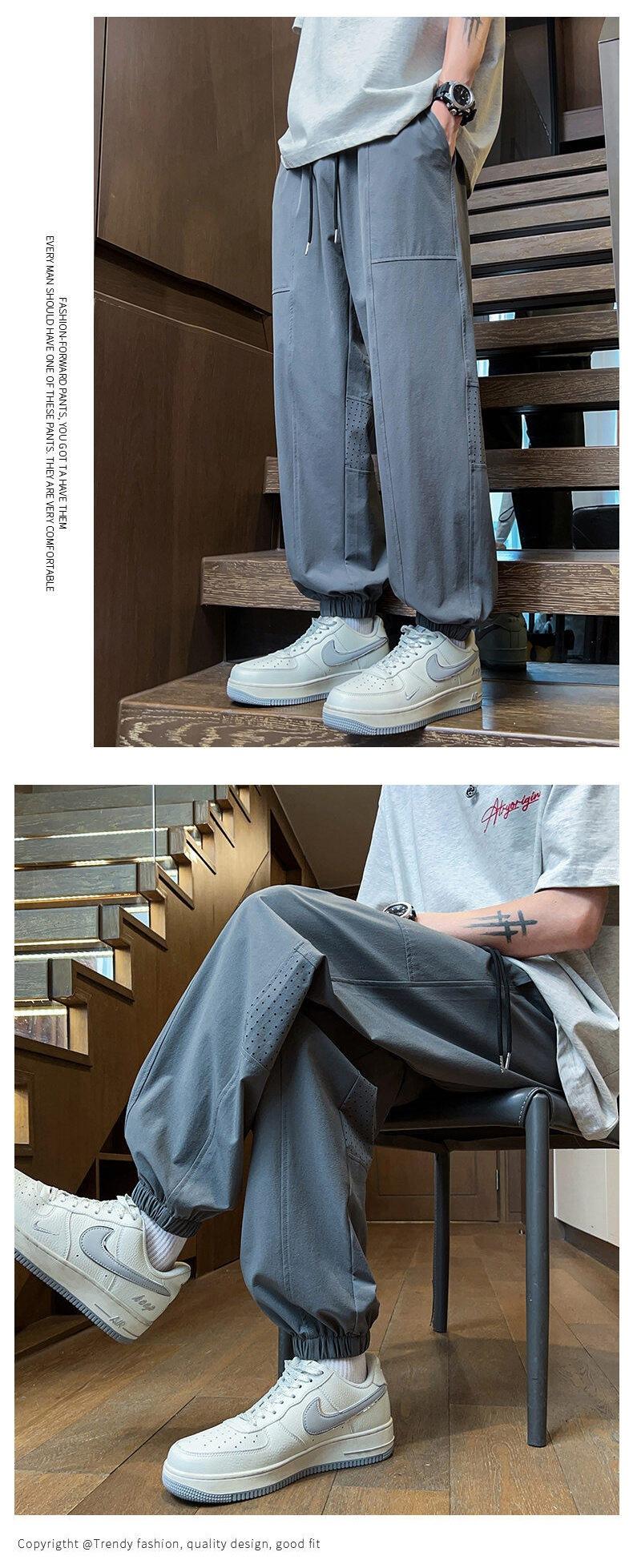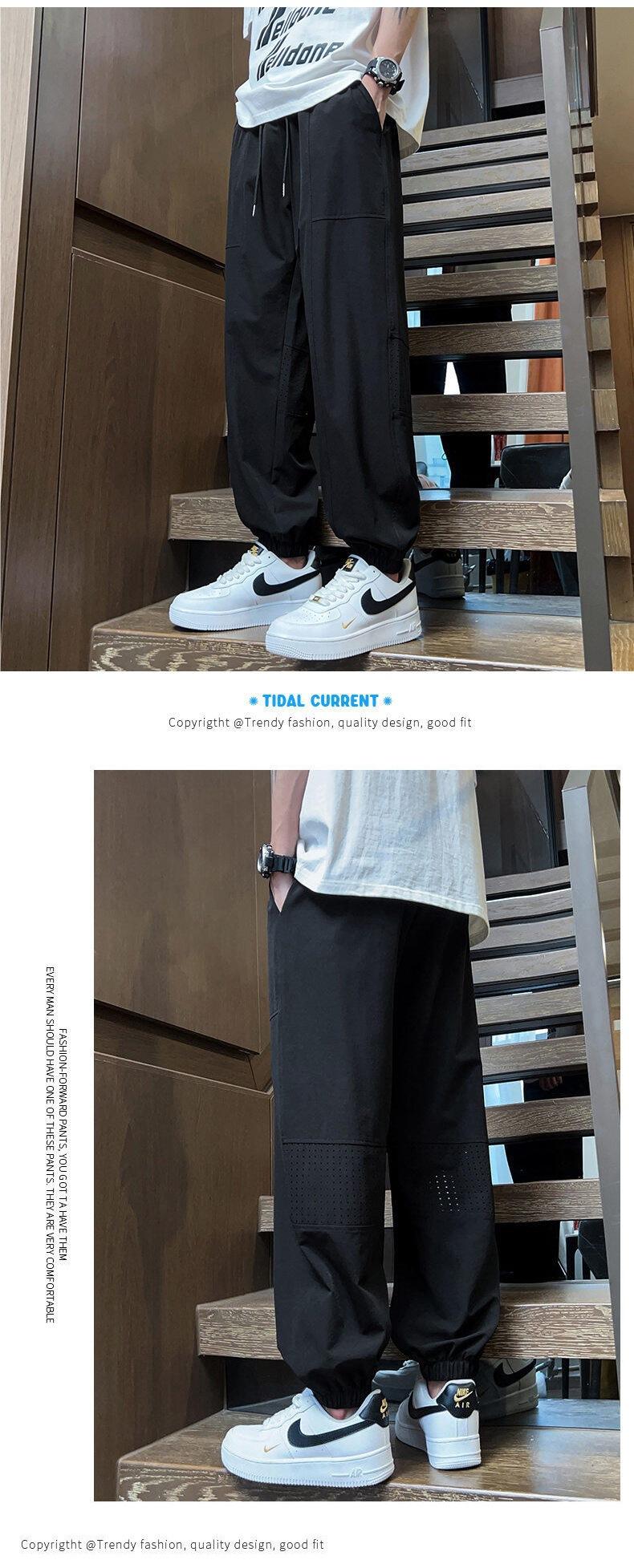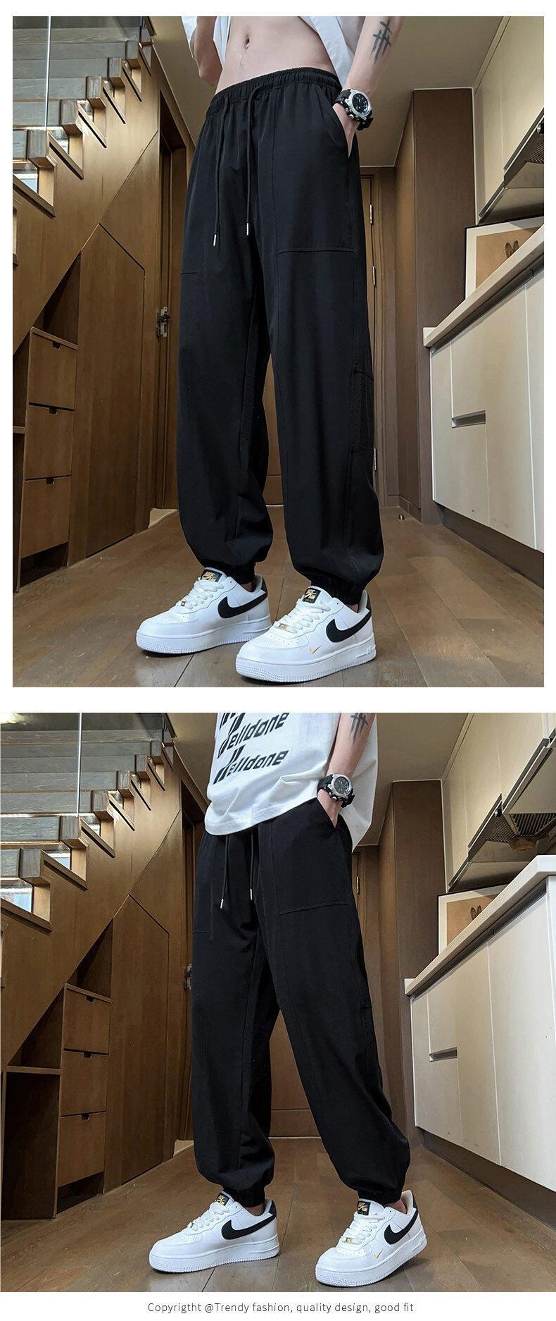 Pantalones de Malla de Seda de Hielo de Verano Delgados de Secado Rápido Pantalones Deportivos Nueve Puntos Juventud Talla Grande Pantalones Casuales 23