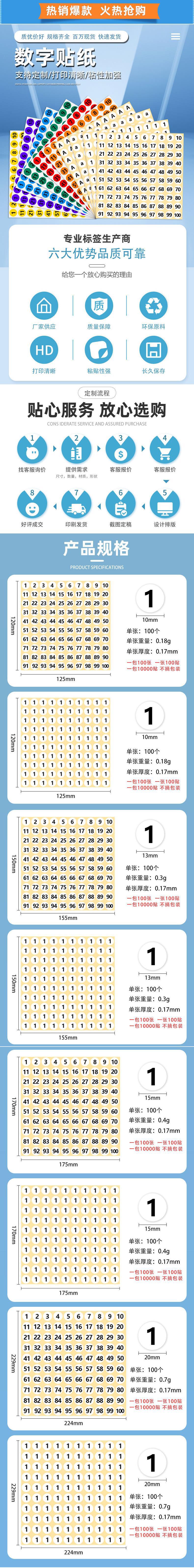 Blue background with black characters and serial numbers; 10mm diameter/100 stickers/sheet (minimum order of 100 sheets/no unpacking)