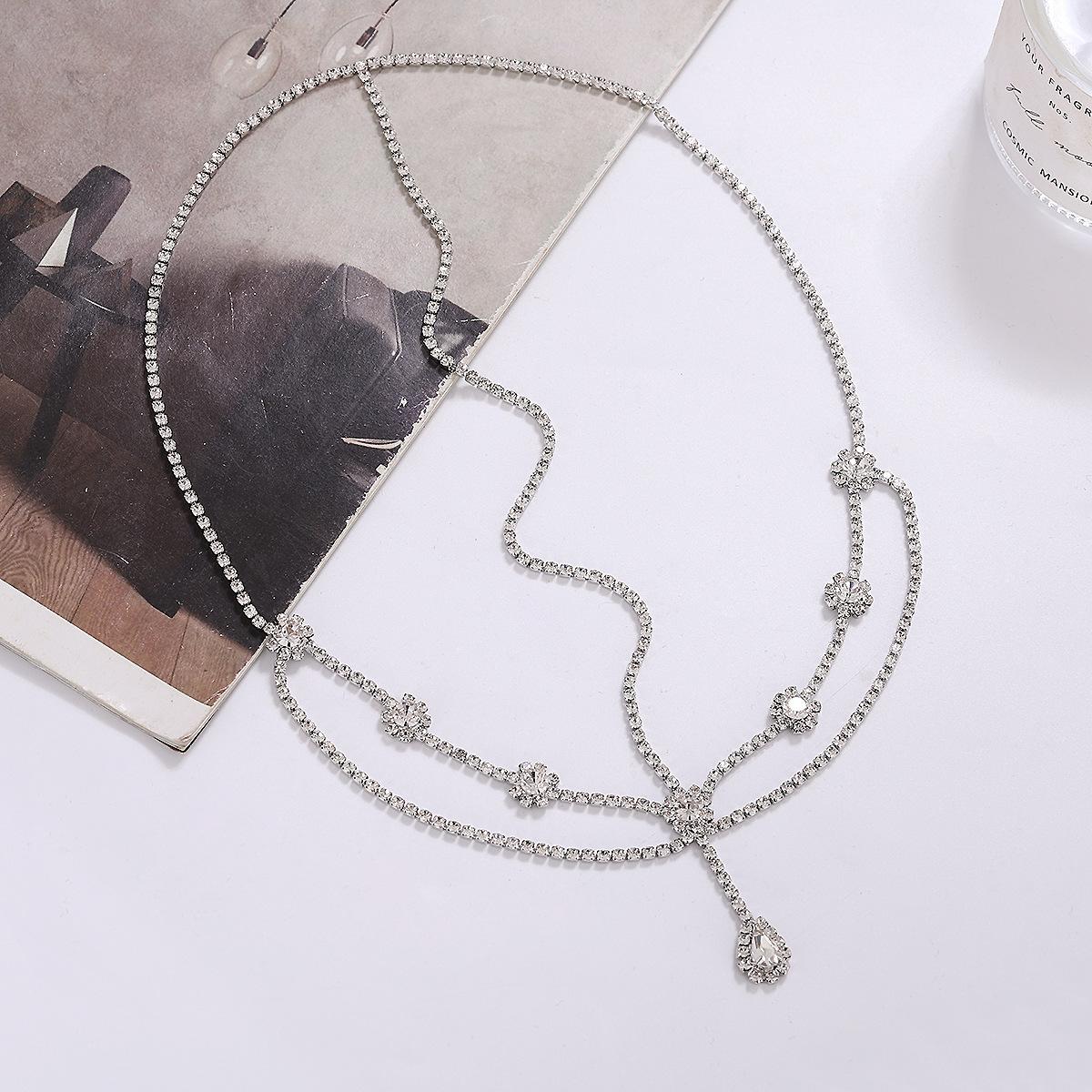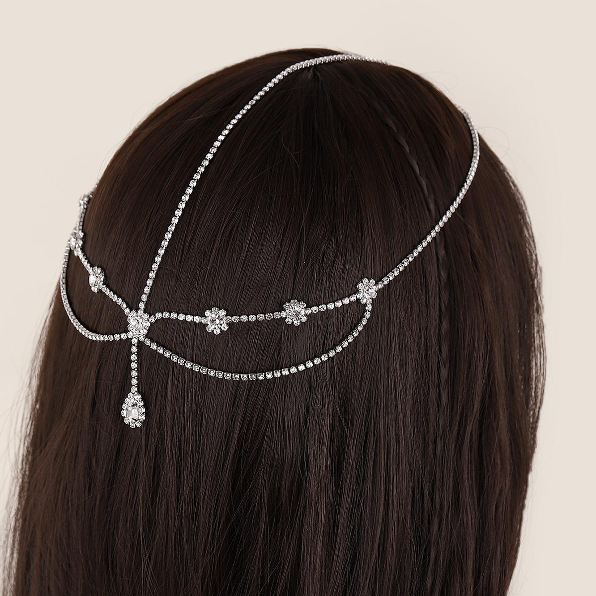 Nuevo Adorno de Frente con Pedrería Colgante para Ceja Tocado Novia Europea y Americana Cadena para Frente Diadema Gota de Agua Tocado Étnico Bohemio