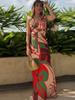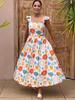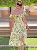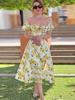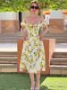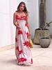 Verano 2025 Nuevo Europeo y Americano Amazon Vestido Largo de Moda Ajustado con Estampado de Flores con Tirantes Descubierto de Hombros de Cintura Alta