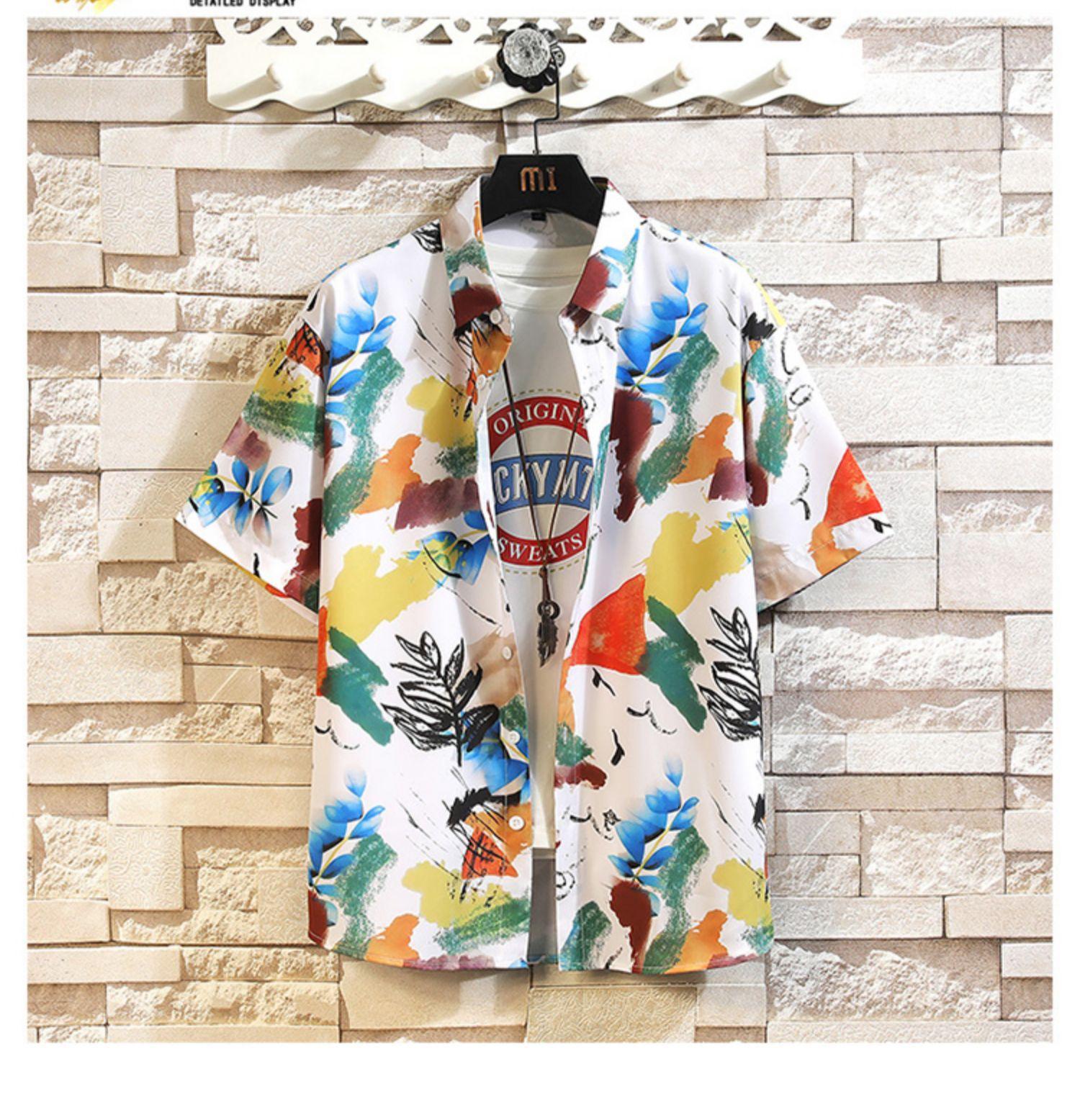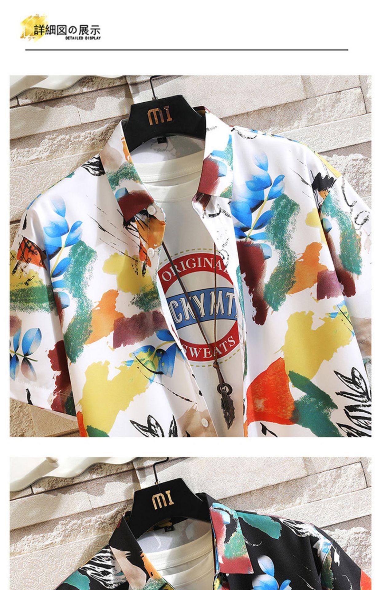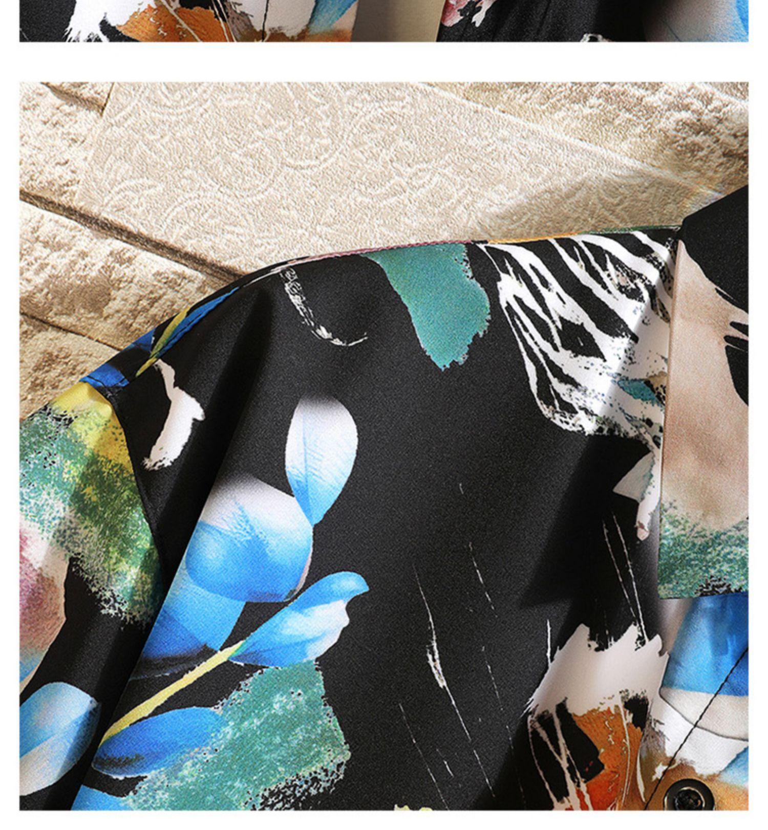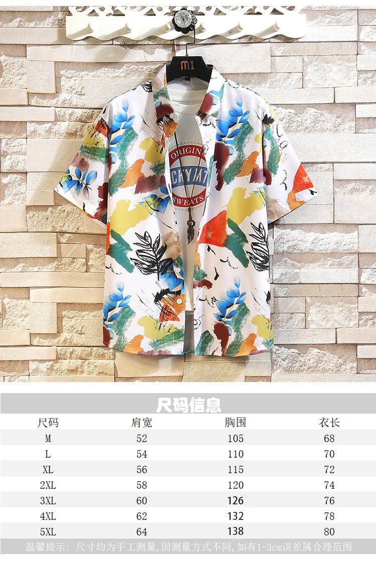 Comercio Exterior Nueva Camisa de Manga Corta para Hombre Moda Suelta Seda de Hielo Drapeada Estampada Camisa Delgada Top para Hombre
