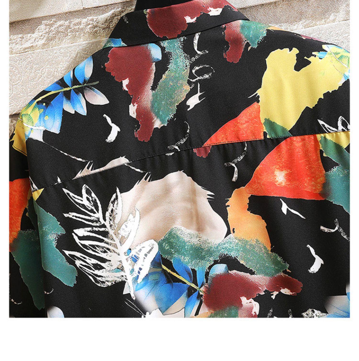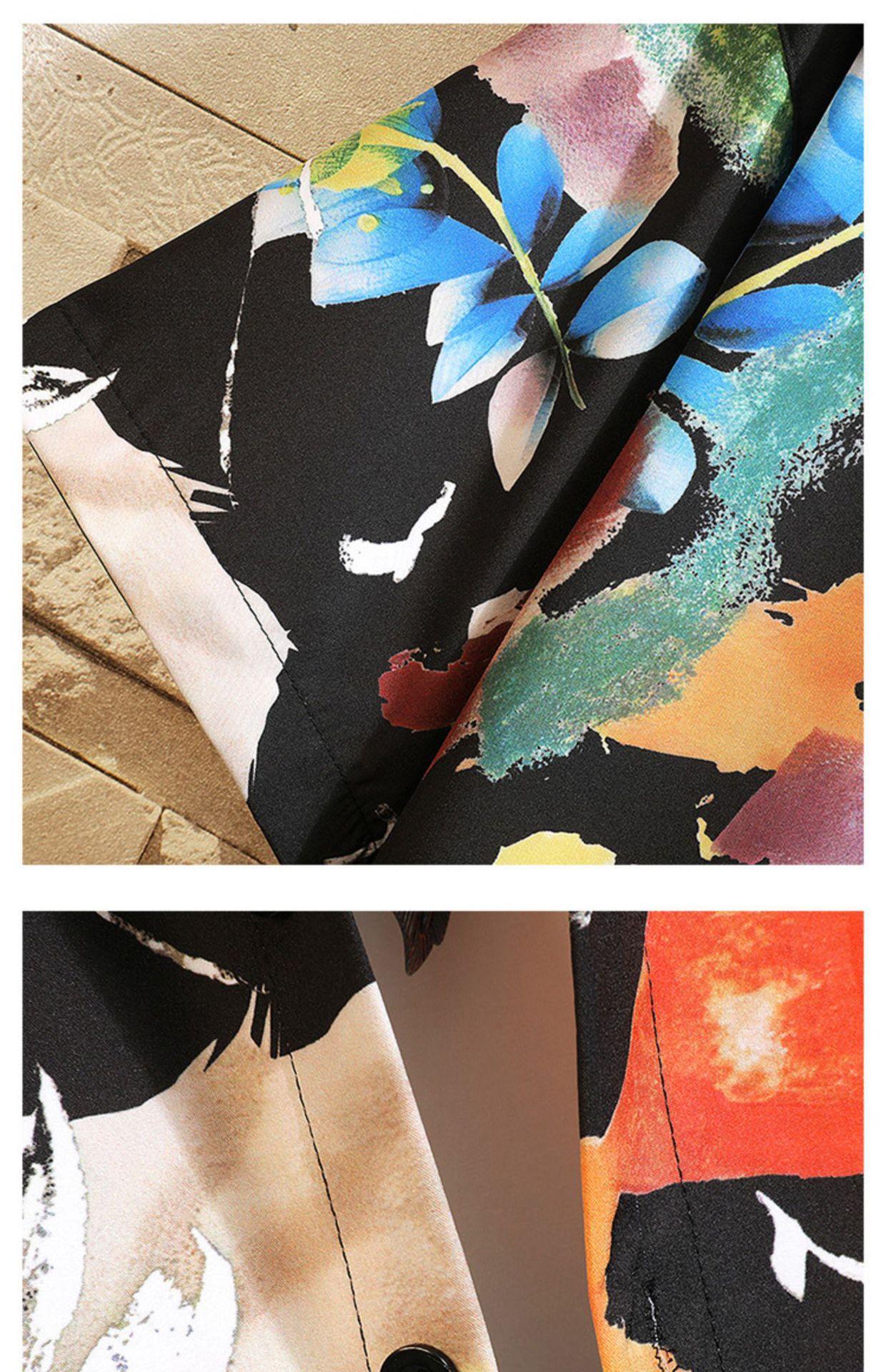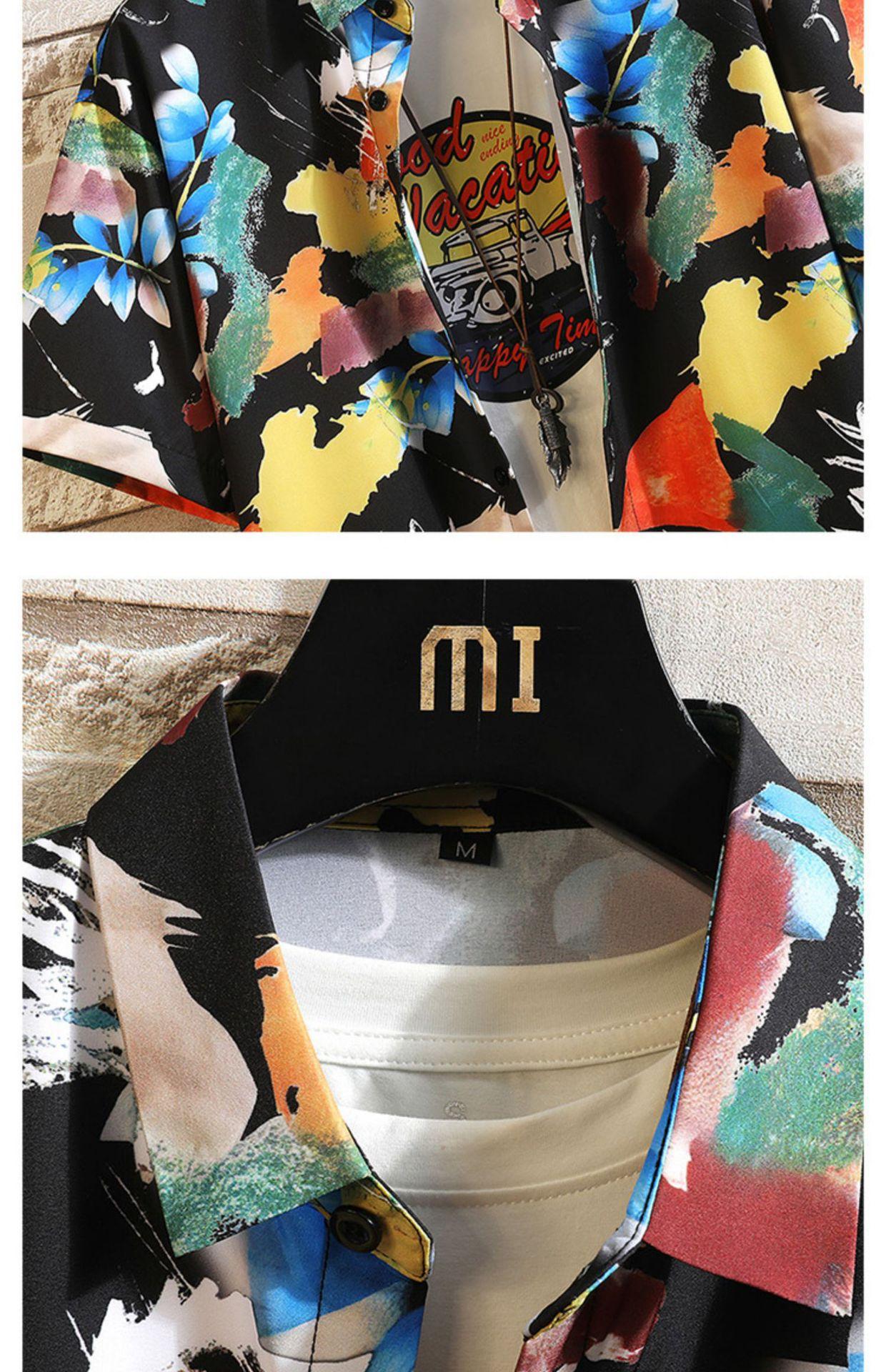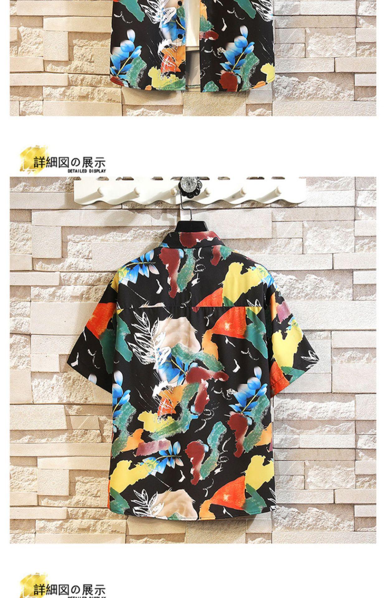 Comercio Exterior Nueva Camisa de Manga Corta para Hombre Moda Suelta Seda de Hielo Drapeada Estampada Camisa Delgada Top para Hombre