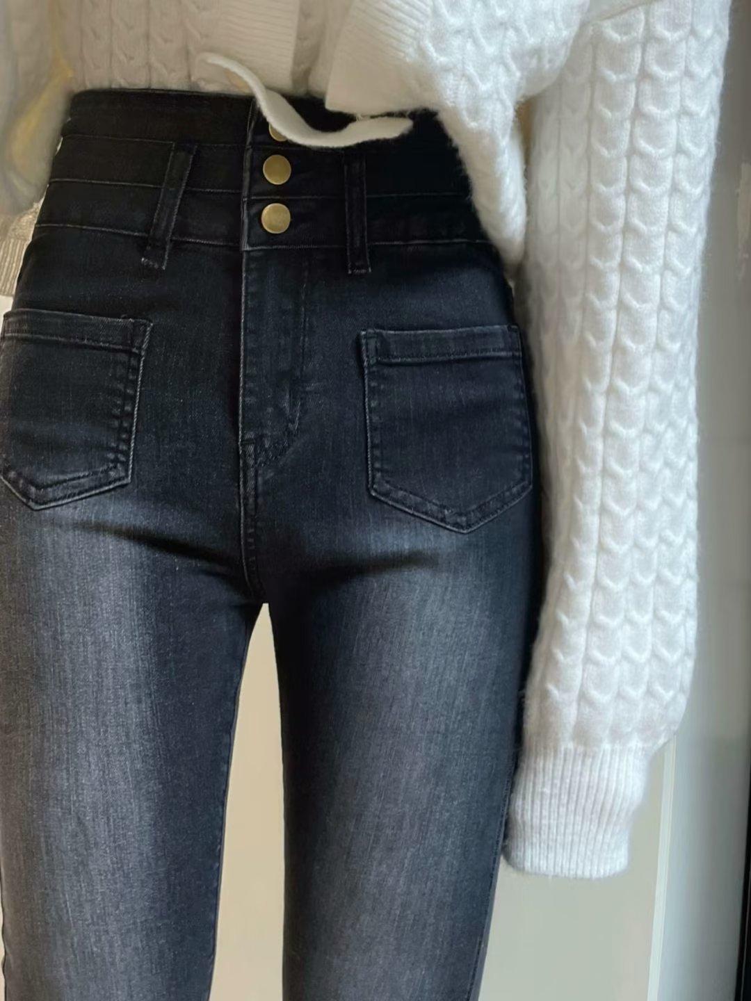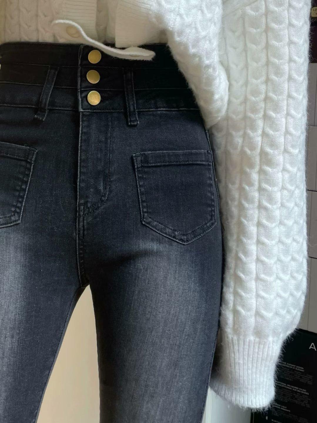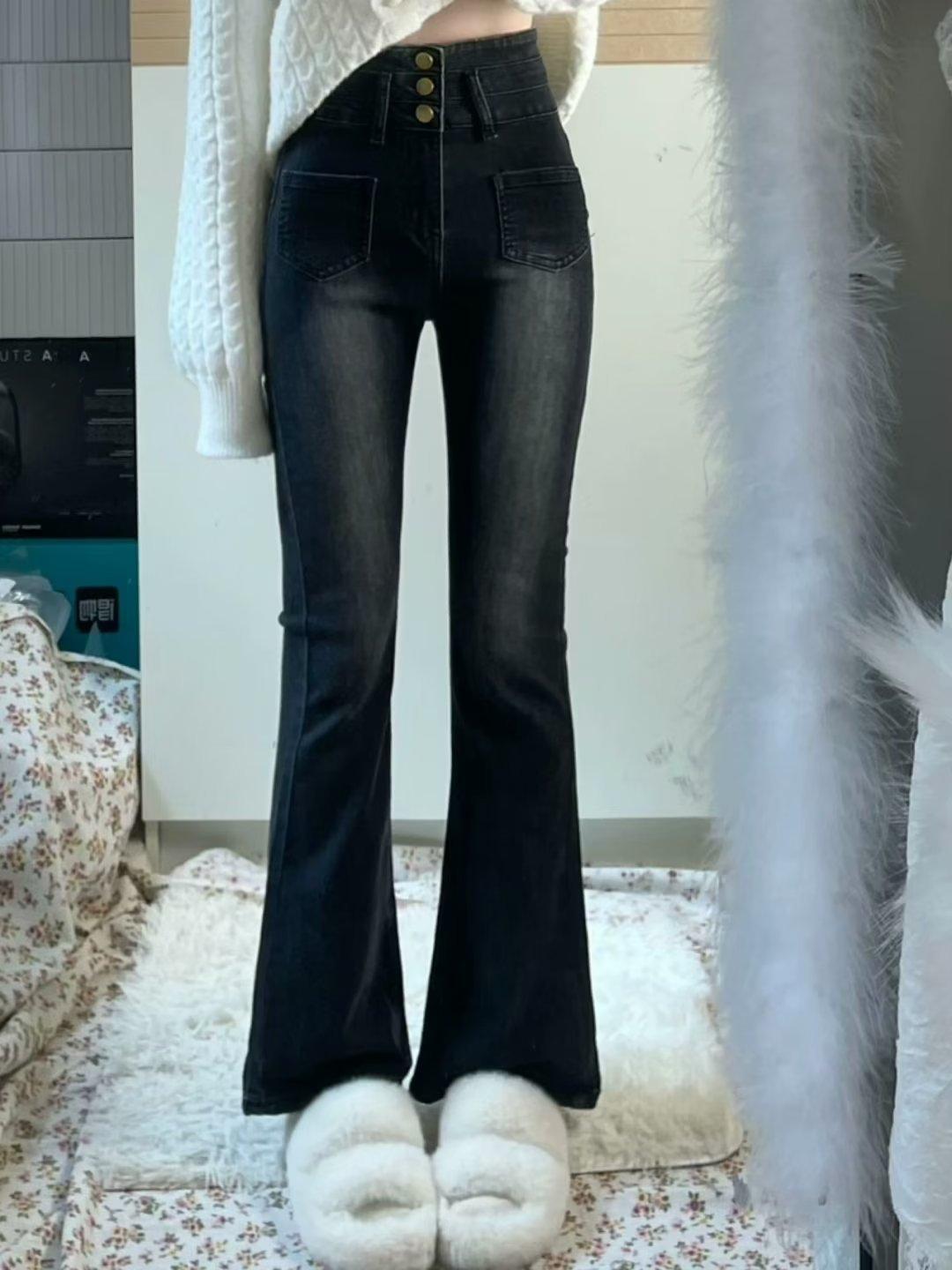 Jeans ajustados de corte skinny para mujer otoño e invierno 2023 Nuevo Retro chica hot High Street adelgazantes de pierna ancha acampanados