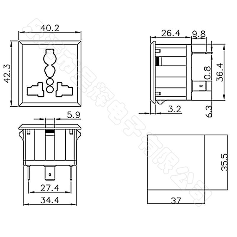 Enchufe de alimentación multifuncional empotrado Tipo tarjeta Enchufe industrial multifuncional de tres orificios Enchufe multifuncional cuadrado