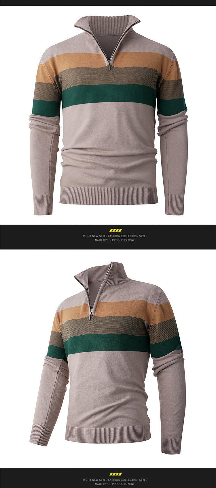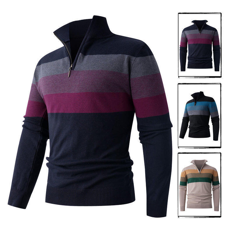 2025 Exportación Transfronteriza Otoño e Invierno Nuevo Tejido de Punto Pulóver de Moda para Hombre con Cuello Alto y Media Cremallera Ropa de Punto Casual para Hombre