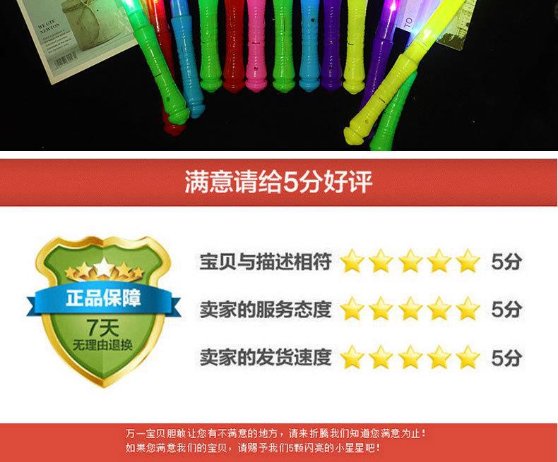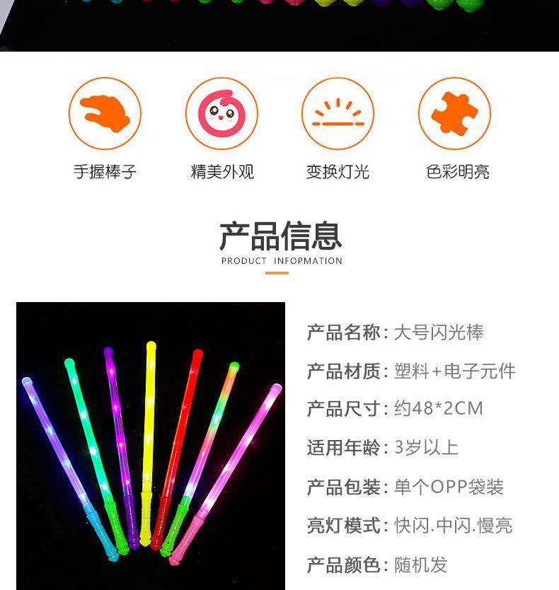 Instrucciones de uso: Retire la membrana protectora del mango del bastón, presione el interruptor para encenderlo y manténgalo presionado para obtener luz normal, destello rápido y destello lento. Los colores son brillantes y deslumbrantes, especialmente adecuados para espectáculos, bailes y otros lugares con luces cambiantes. Presione de nuevo para apagarlo.