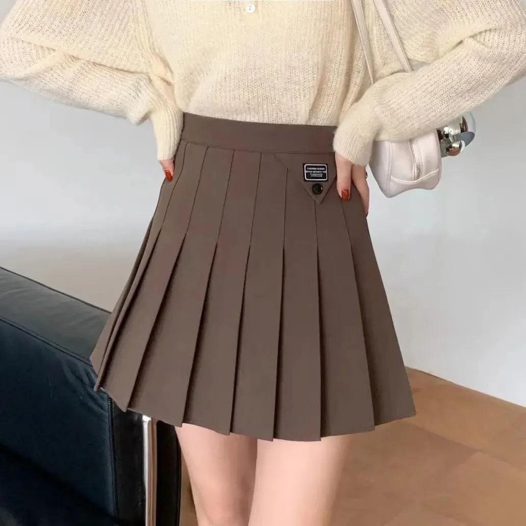 Traje Falda Plisada para Mujer 2025 Primavera y Verano Nuevo Cintura Alta Slim Estilo Preppy Británico Falda Corta Línea A Falda Pantalón