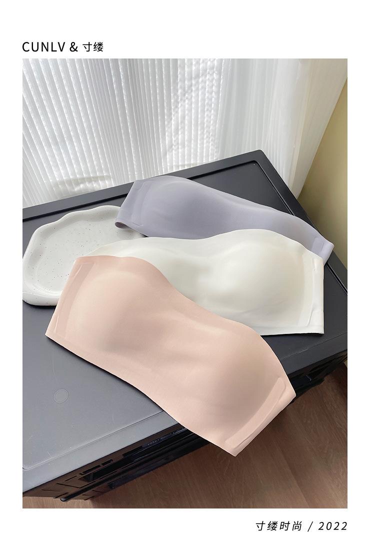 Ropa interior sin tirantes para mujer, pecho pequeño, push up, delgada, antideslizante, sin costuras, top de tubo invisible, pecho, tira de gelatina envuelta, sujetador