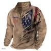 Nueva Camiseta Polo de Media Cremallera para Hombre de Estación Independiente Europea y Americana, Top con Estampado Digital 3D, Suéter de Moda Casual para Hombre