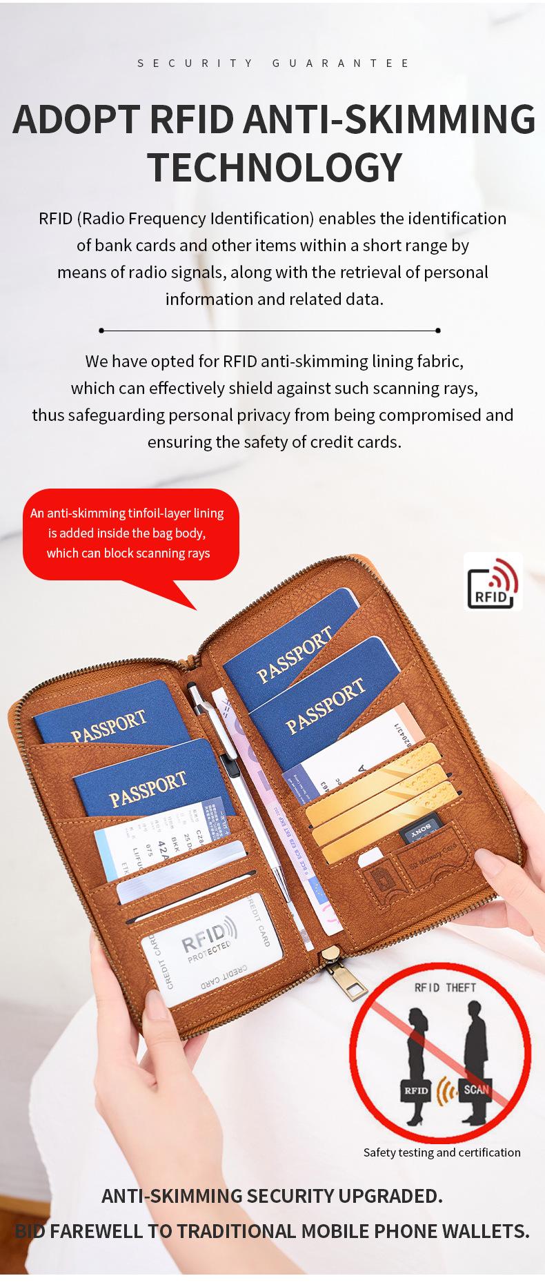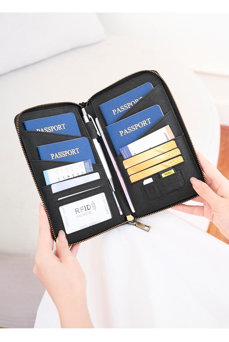 Bolsa para pasaporte con cremallera, multifuncional, para viajes, con RFID, para almacenamiento de billetes, para uso transfronterizo (2023)