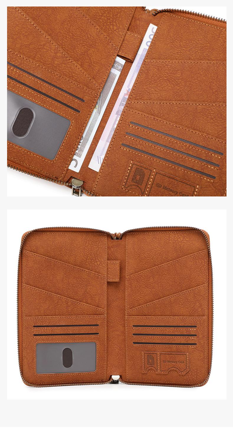 Cartera de mujer con RFID antirrobo transfronterizo, de cuero encerado, con doble cremallera, estilo cartera larga, estilo retro europeo y americano.