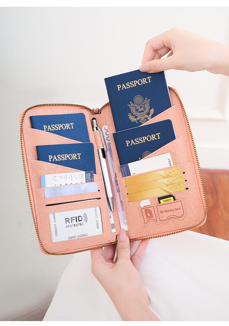 Nuevo porta pasaporte RFID antirrobo transfronterizo con cremallera y hebilla, portadocumentos, bolsa de viaje multifuncional para pasaporte