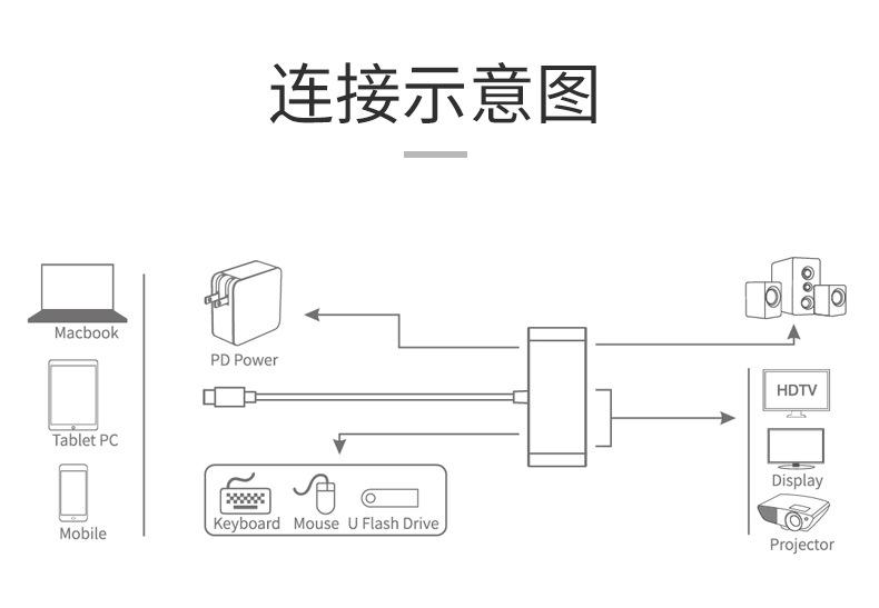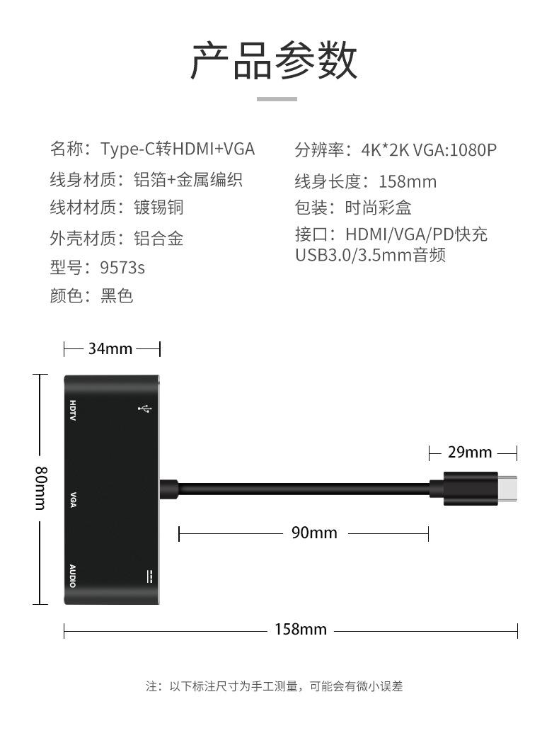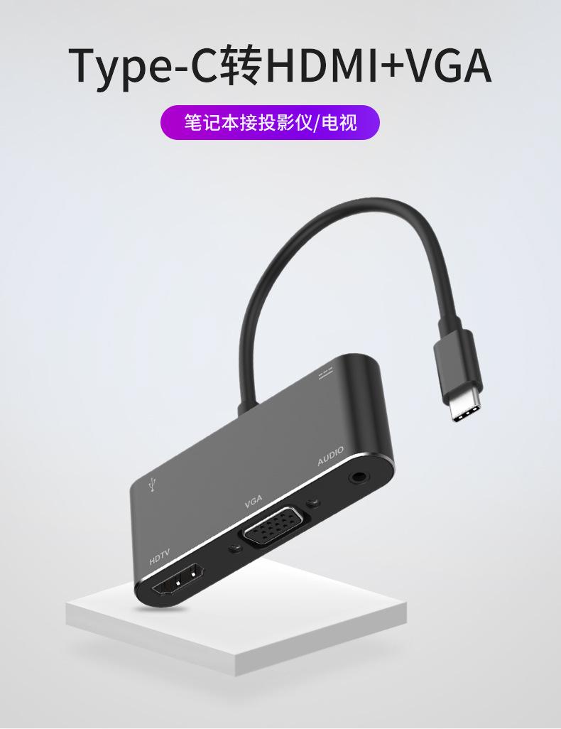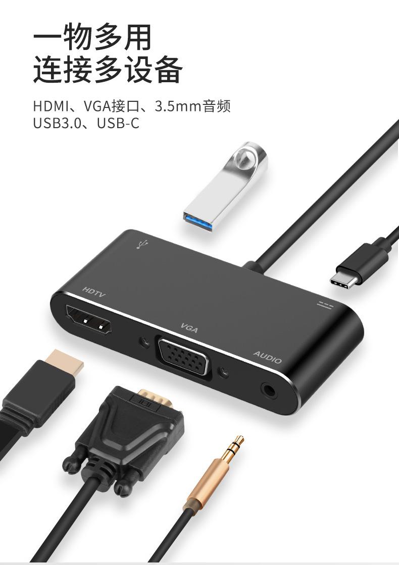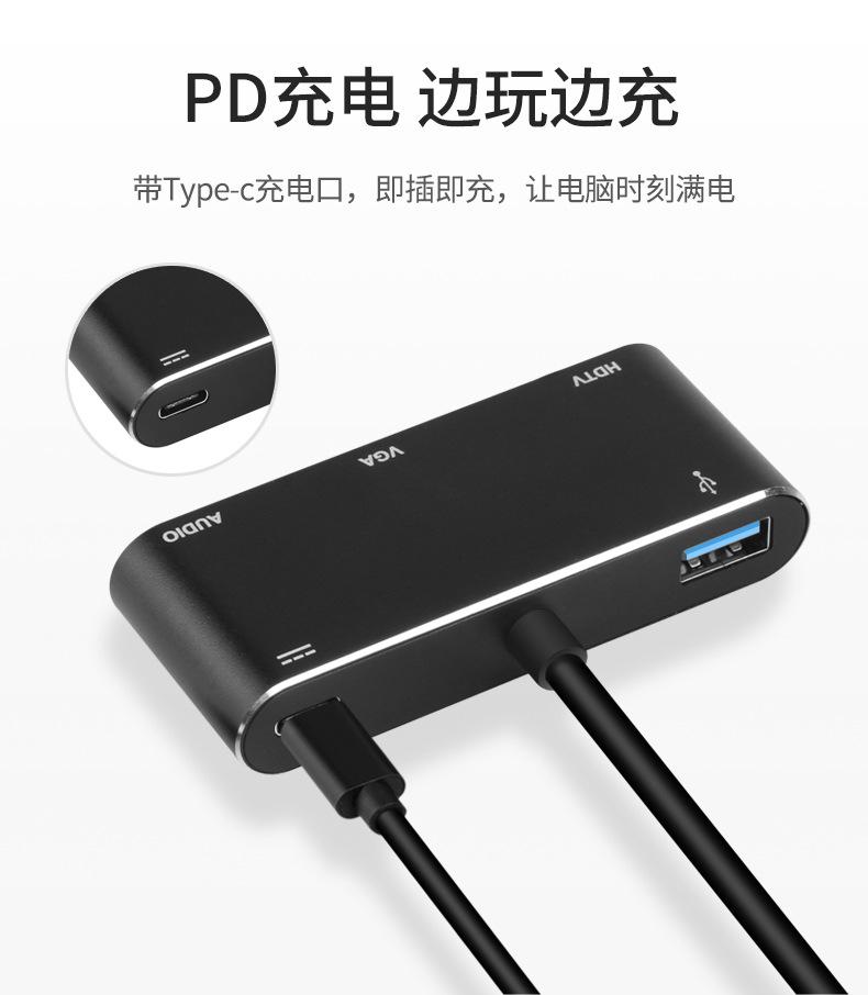 Fuente de Fábrica TIPO C a HDMI+VGA +Audio 3.5 PD Carga Rápida+Cable Adaptador usb3.0