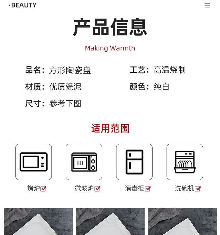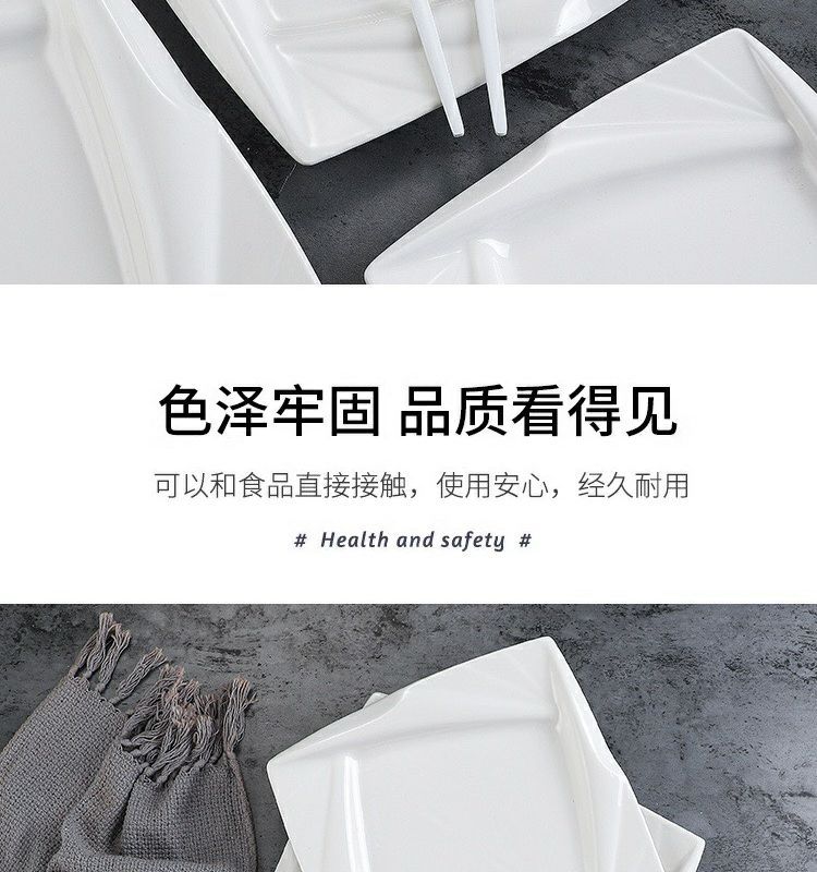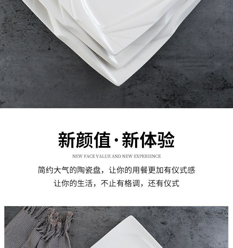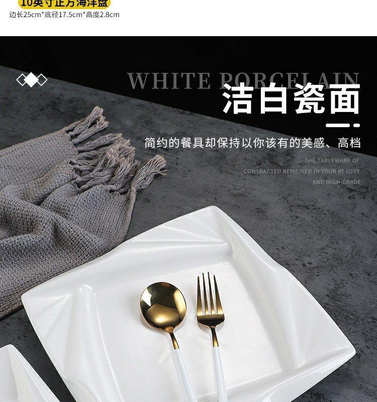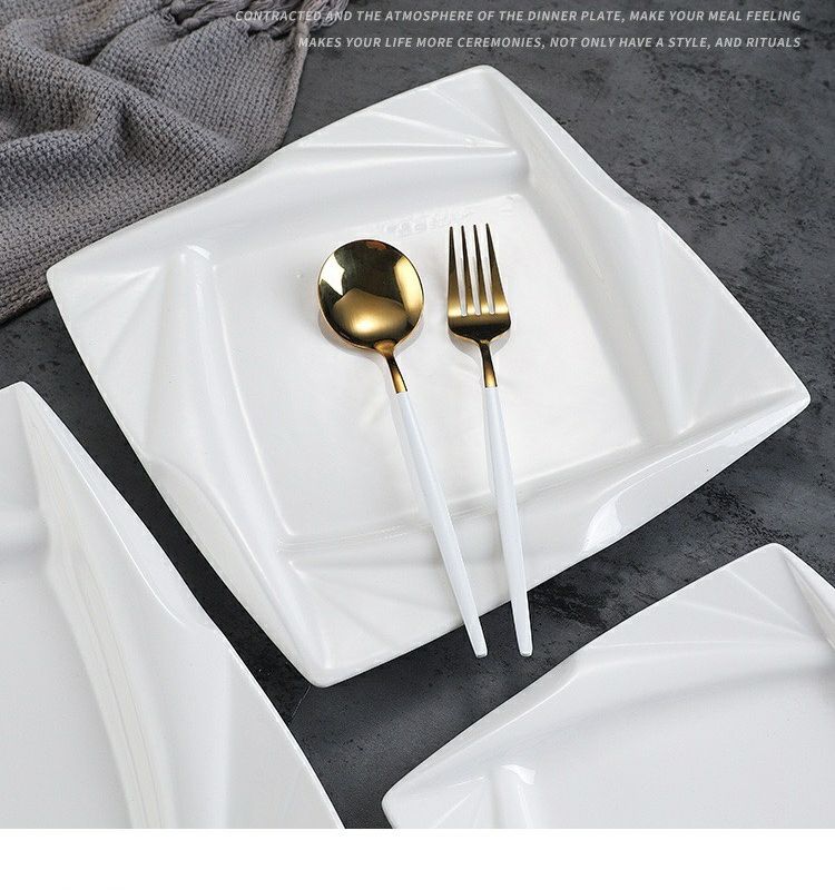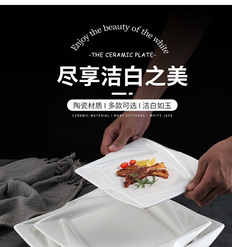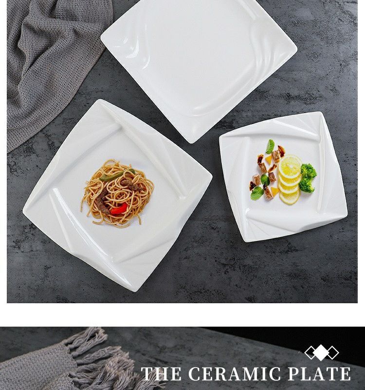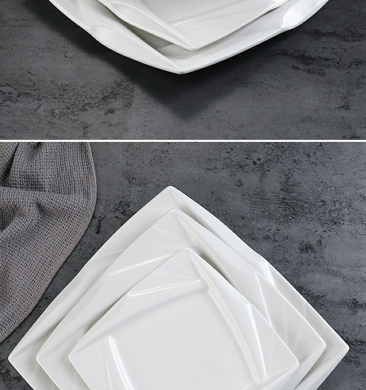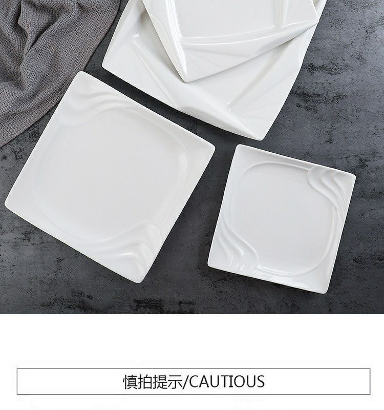 Plato Cuadrado para Bistec de Hotel Cerámica Blanca Pura Cuadrado Estilo Occidental Cocina Casera Plato para Platillo Caliente y Frío Plato Hondo Vajilla Estilo Occidental