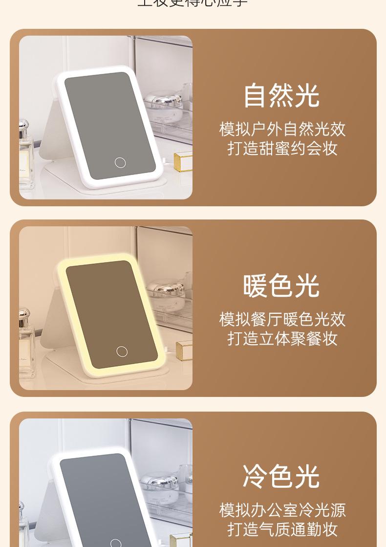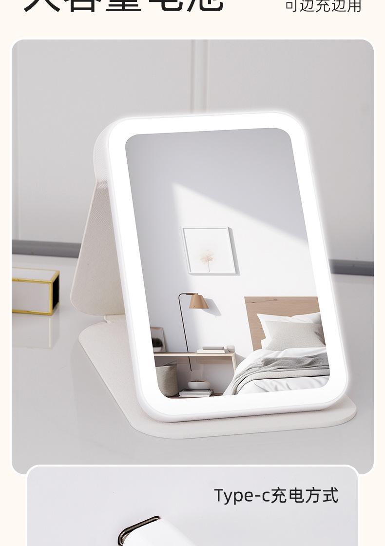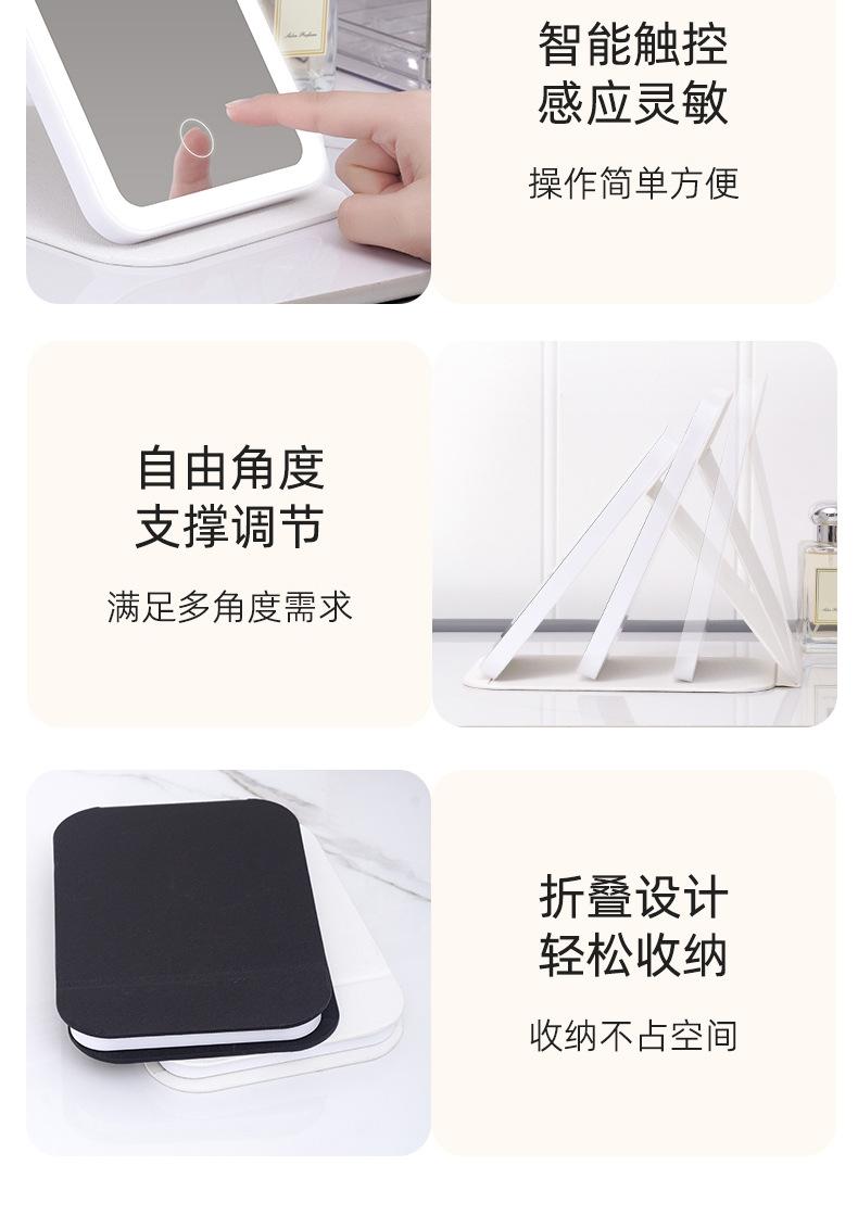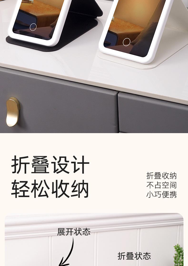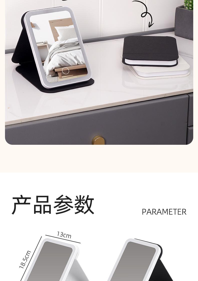 Espejo de Maquillaje LED Espejo Portátil Plegable Iluminado Espejo de Maquillaje de Escritorio Escritorio Relleno Dormitorio Oficina Espejo