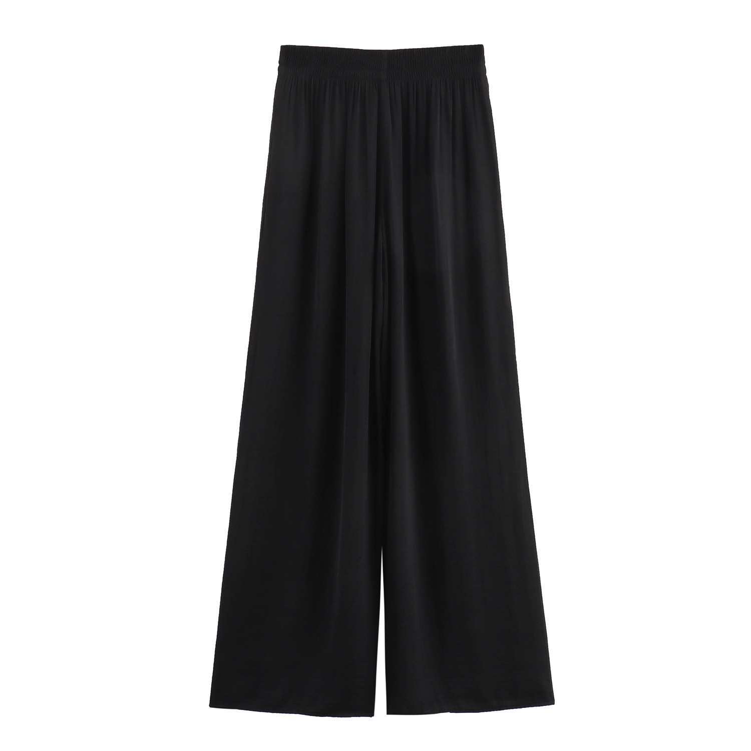 Compra Europeo y Americano Elástico Cintura Alta Nueva Moda Femenina Casual Todo Combinable Pantalones de Pierna Ancha Primavera Transfronterizo Delgado al por mayor en Joom.pro