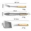 Juego de Herramientas para Barbacoa de Acero Inoxidable Herramientas para Barbacoa al Aire Libre Barbacoa Mango de Madera de Caucho Pala Tenedor Pinza Combinación Juego de Parrilla 3 Piezas