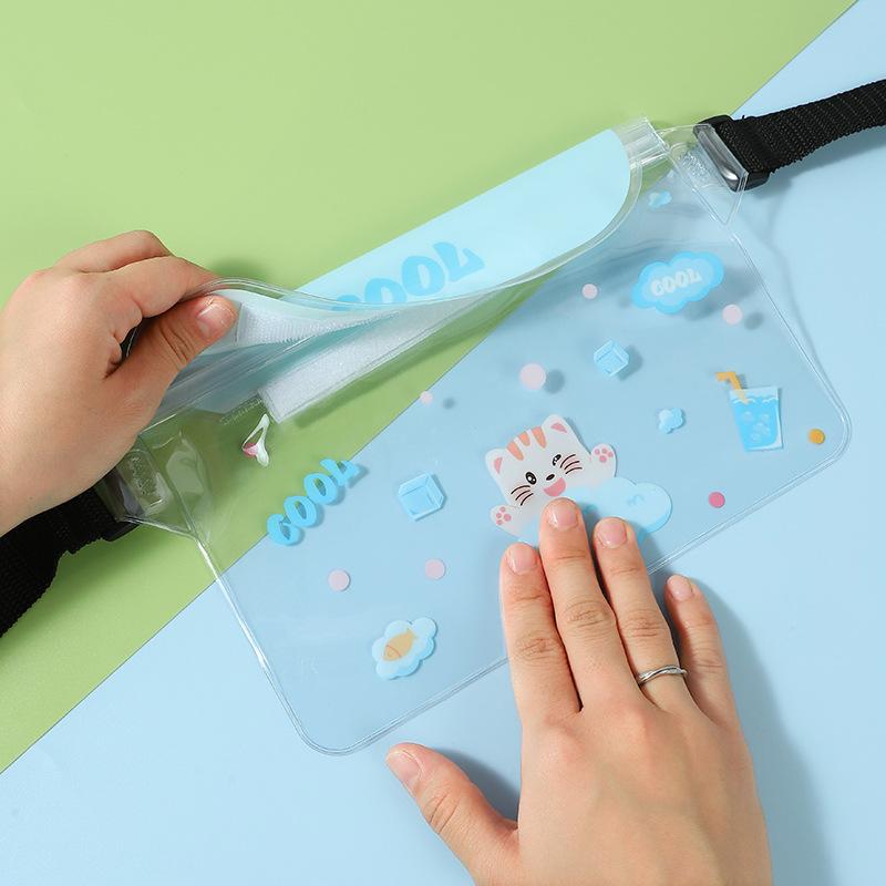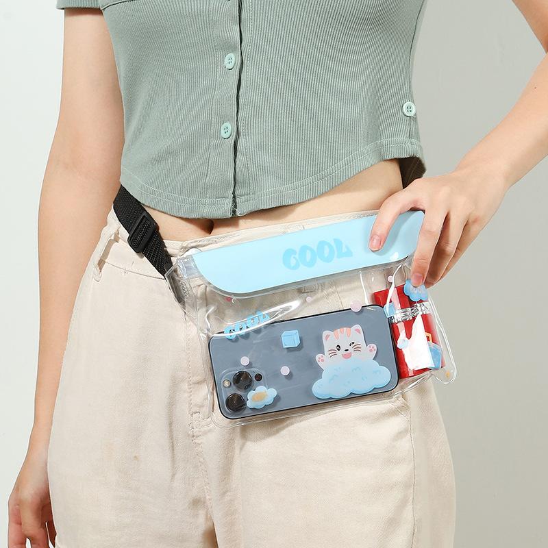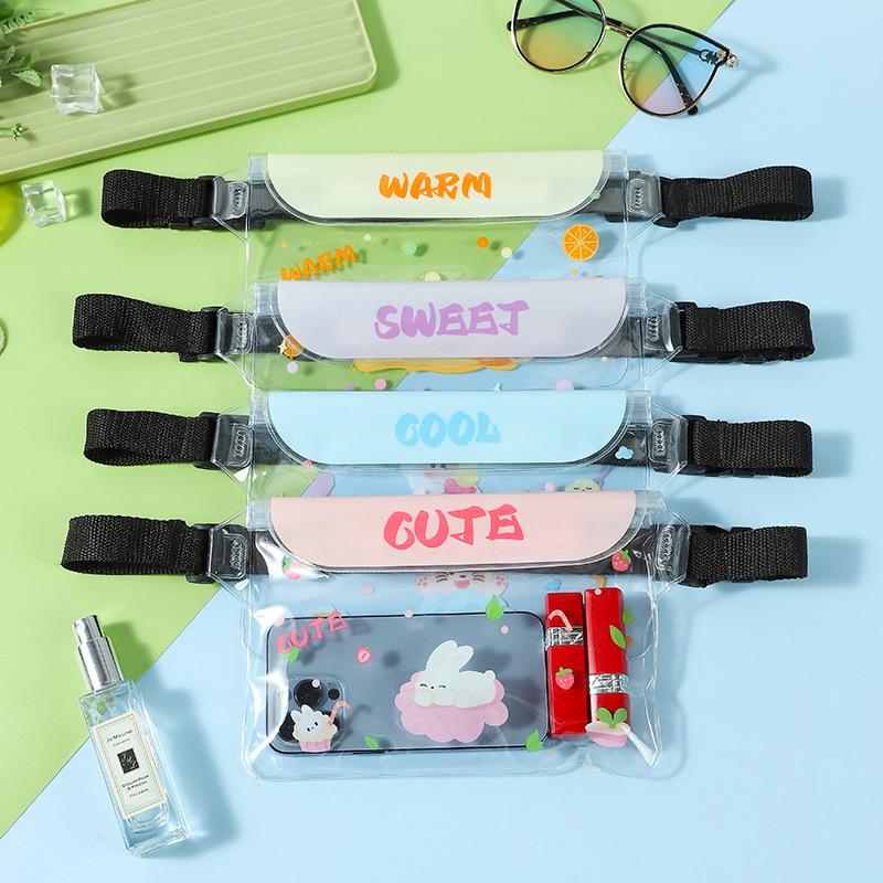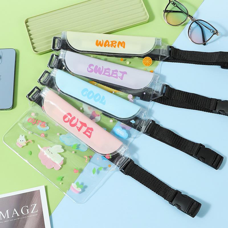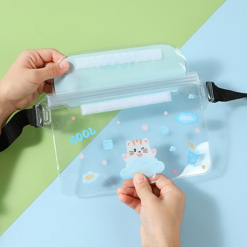Bolsa Impermeable para Teléfono Móvil Ajustable para Exterior, Playa, Natación, Buceo, Rafting, Bolsa de Almacenamiento para Teléfono Móvil, Riñonera Transparente con Dibujos Animados