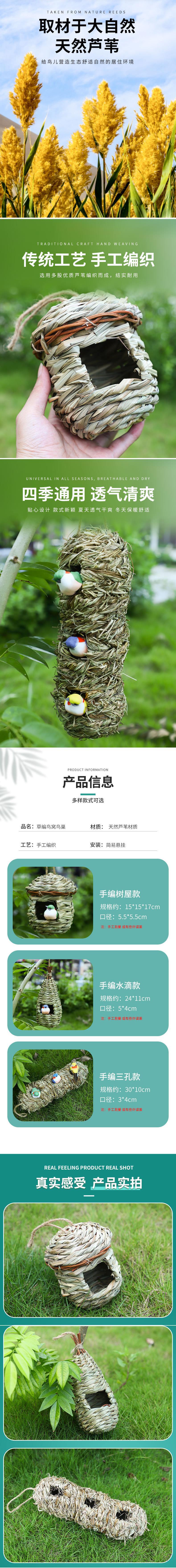 Fabricante Venta al por Mayor Nido de Pájaro de Paja Jaula Exterior Cálido Nido de Pájaro Casa de Pájaro Suministros para Mascotas Nido Decorativo de Paja Nido Colgante Jaula para Pájaro