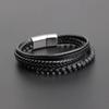 Suministro Transfronterizo Tendencia Europea y Americana Pulsera Retro de Moda para Hombre Tejida a Mano con Cuerda de Cuero Pulsera Personalizada de Acero Inoxidable