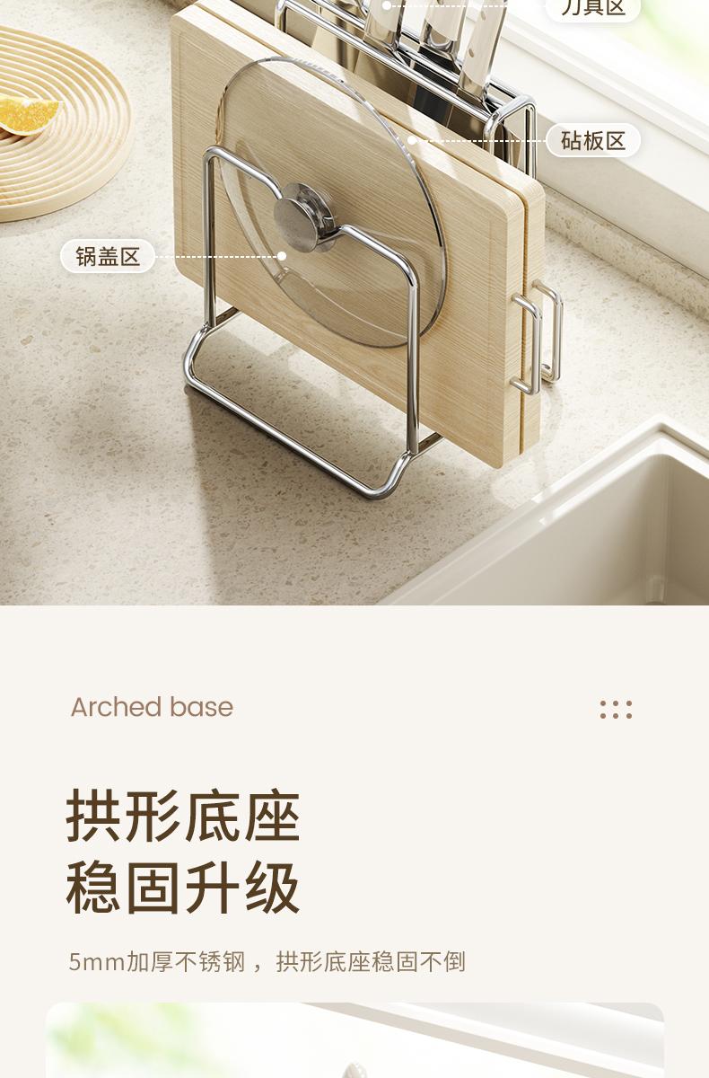 Portacuchillos de Acero Inoxidable, Estante para Tabla de Cortar, Estante de Almacenamiento de Cocina Integrado, Almacenamiento para Tapas de Ollas de Cocina, Estante para Colocar Cuchillos y Tablas de Cortar