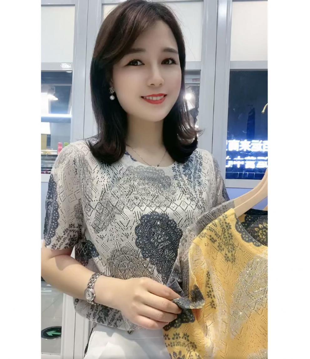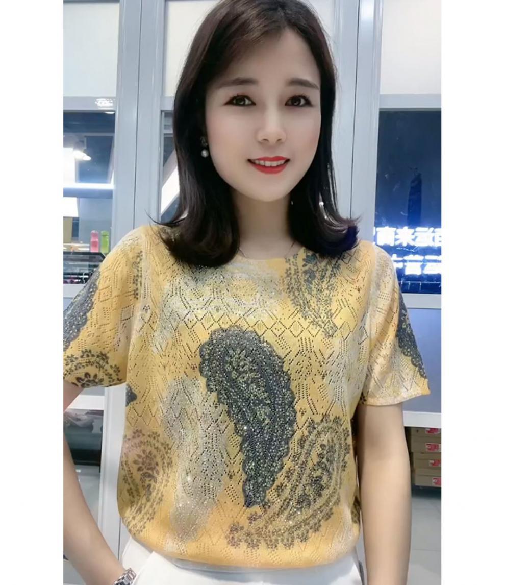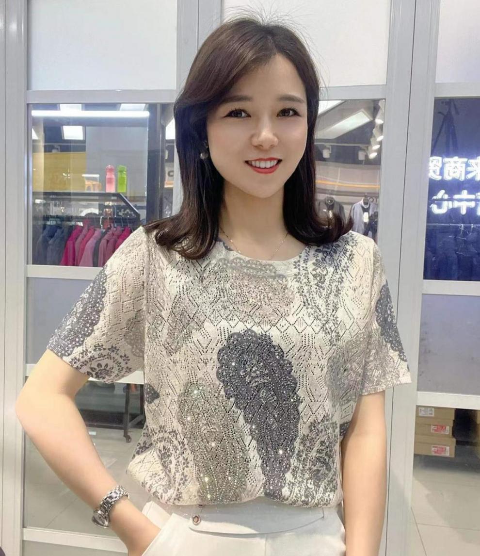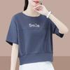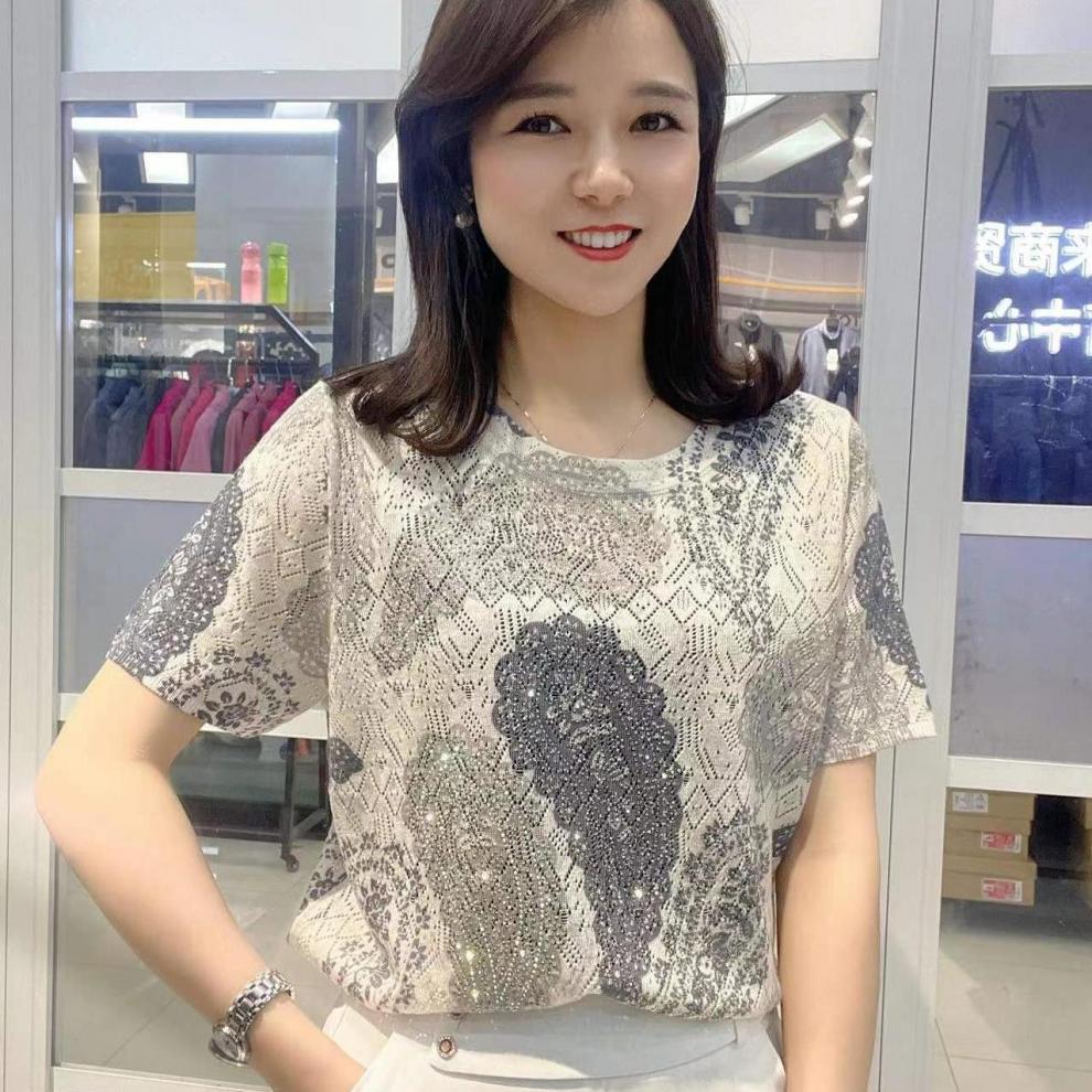 Camiseta de Moda de Verano 2022 con Pedrería de Manga Corta para Mujer, Camiseta Básica Holgada Adelgazante con Estampado