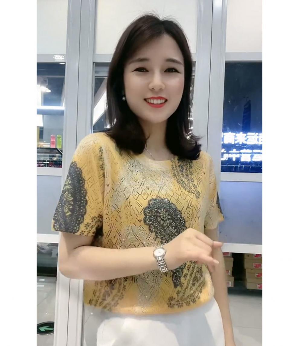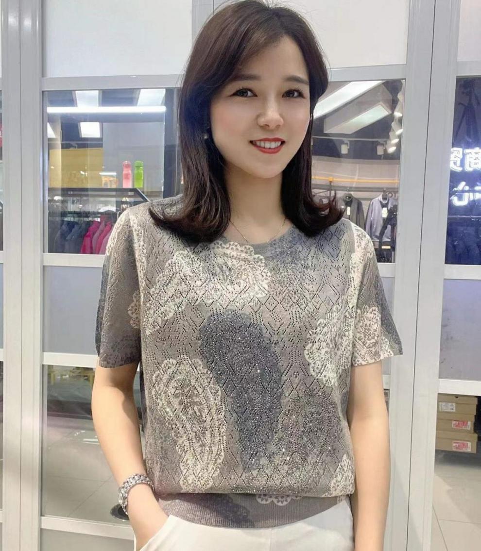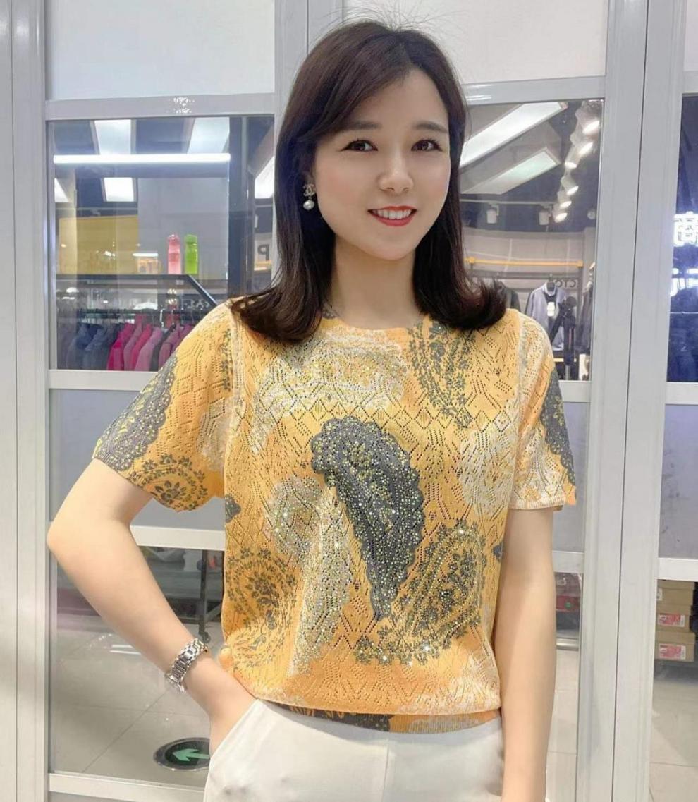 Camiseta de Moda de Verano 2022 con Pedrería de Manga Corta para Mujer, Camiseta Básica Holgada Adelgazante con Estampado