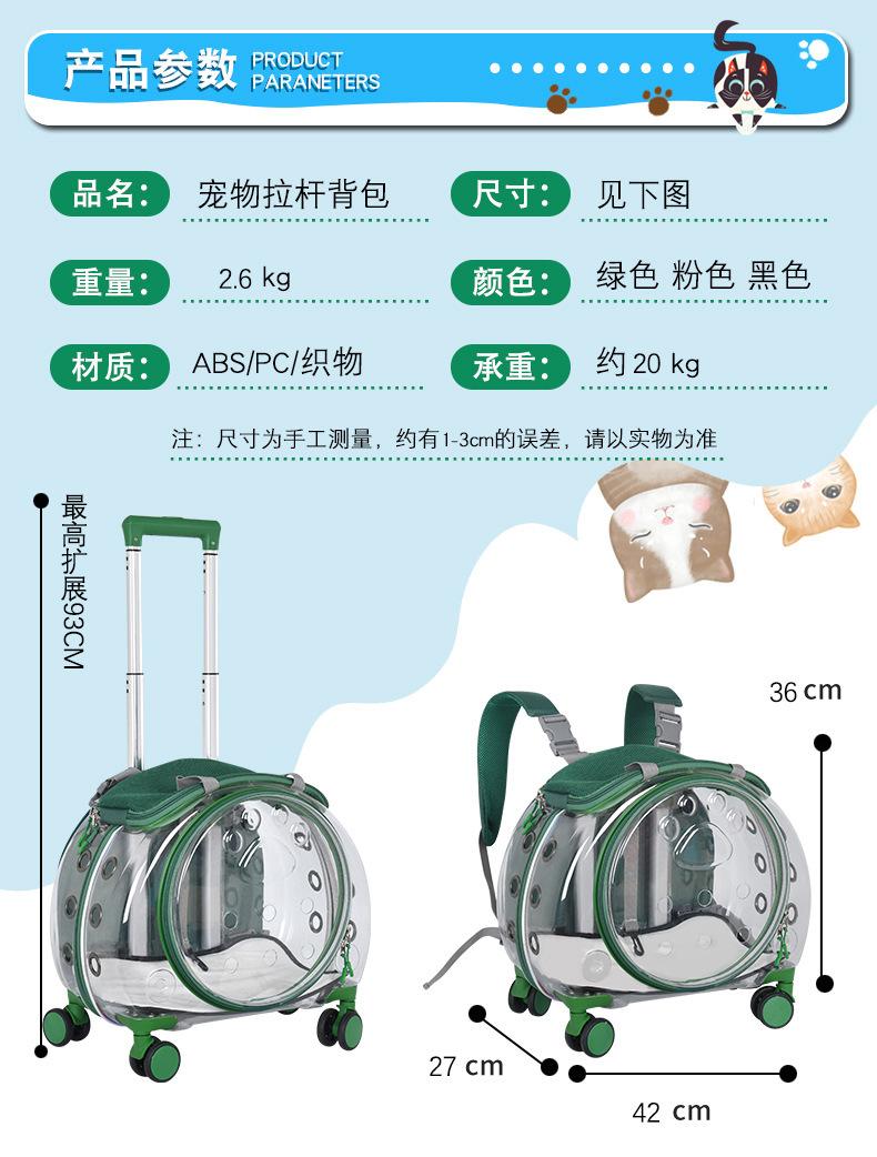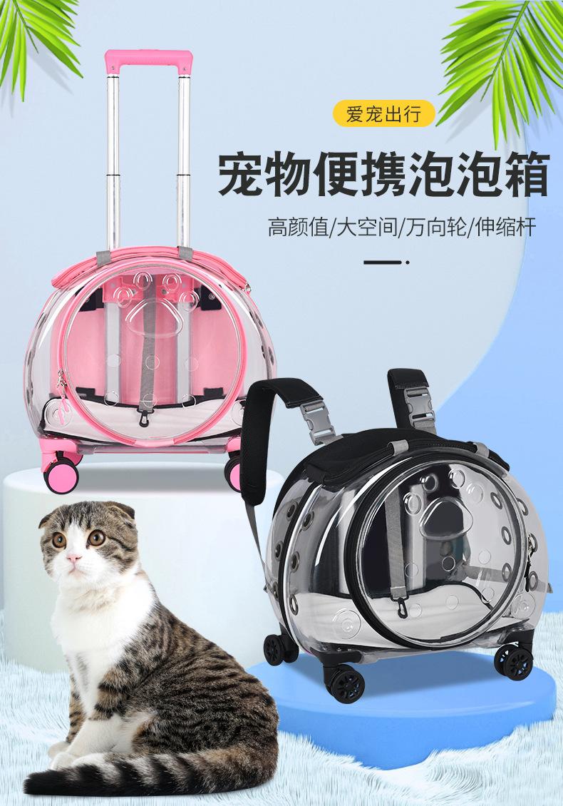 Maleta Trolley para Mascotas Transparente Estuche para Mascotas Mochila Portátil para Gatos para Exterior Coche Multifuncional Cápsula Espacial Bolsa para Gatos