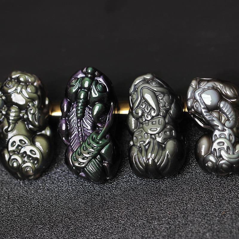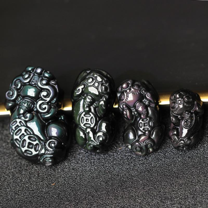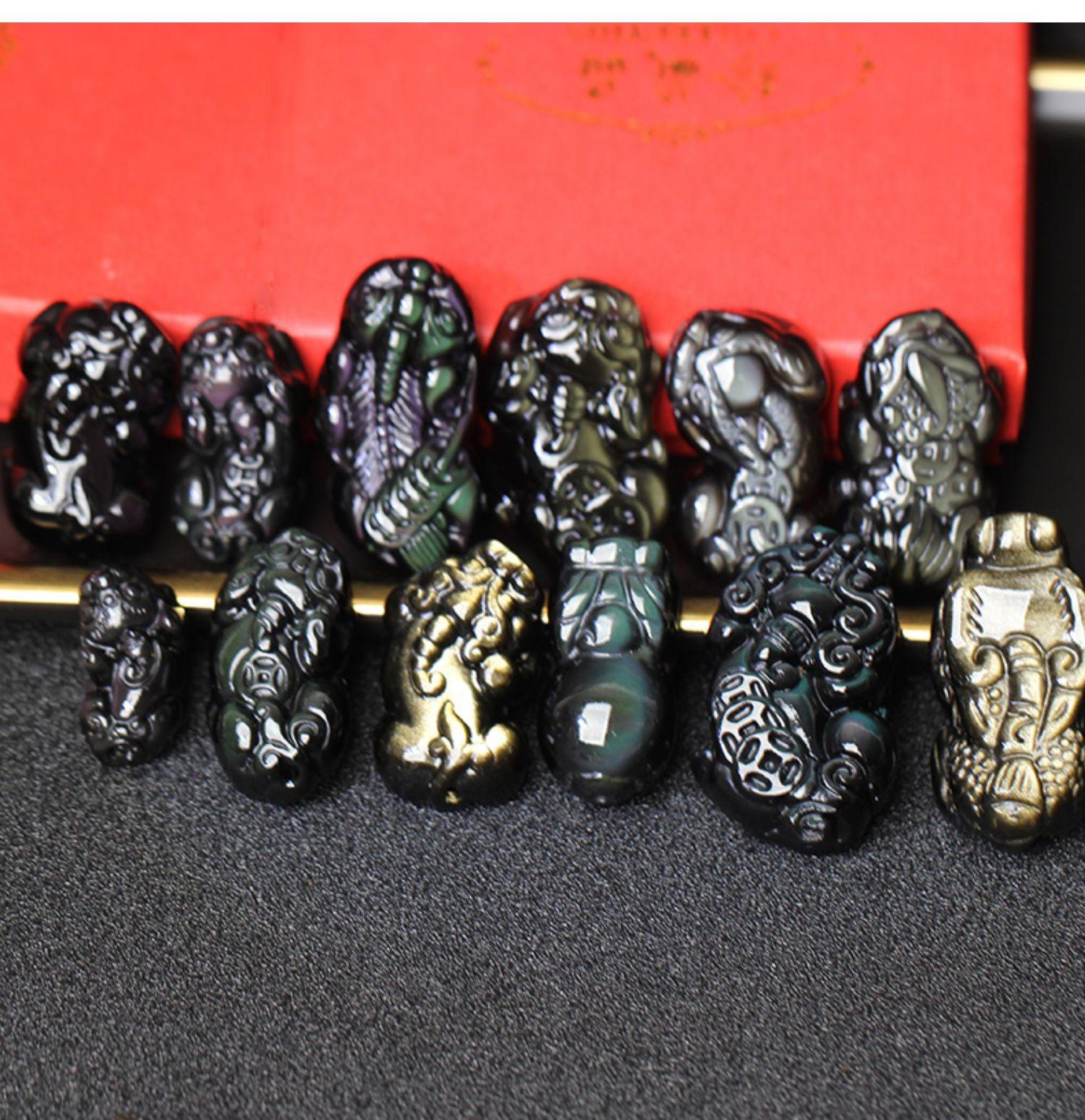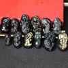 Obsidian small elbow pixiu, Gold obsidian small elbow pixiu, Small obsidian money pixiu, Small gold obsidian m...