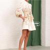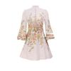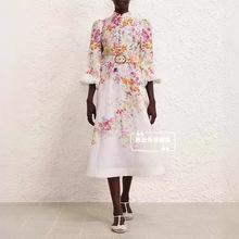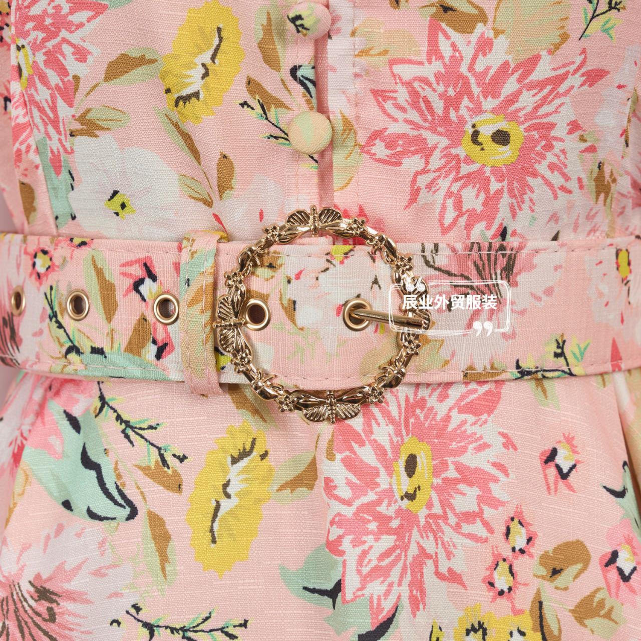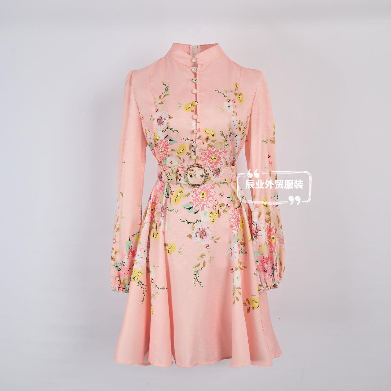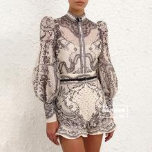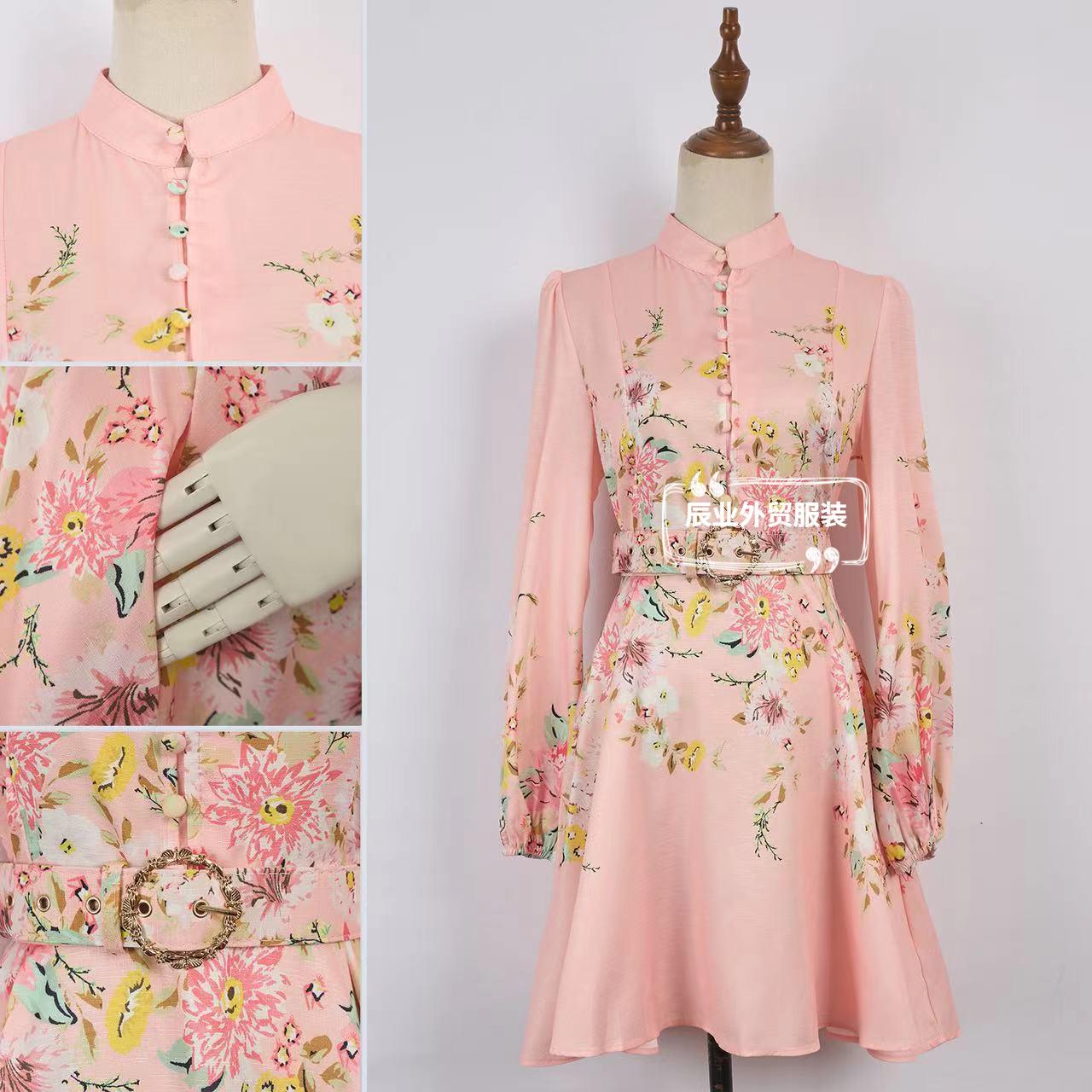 Nuevo Estilo Primavera Verano 2025 Transfronterizo Cuello Alto Cruzado Manga Linterna Vestido Estampado Femenino Versátil Falda Corta
