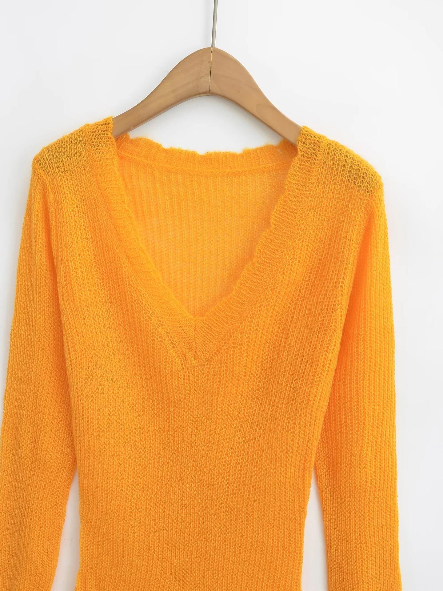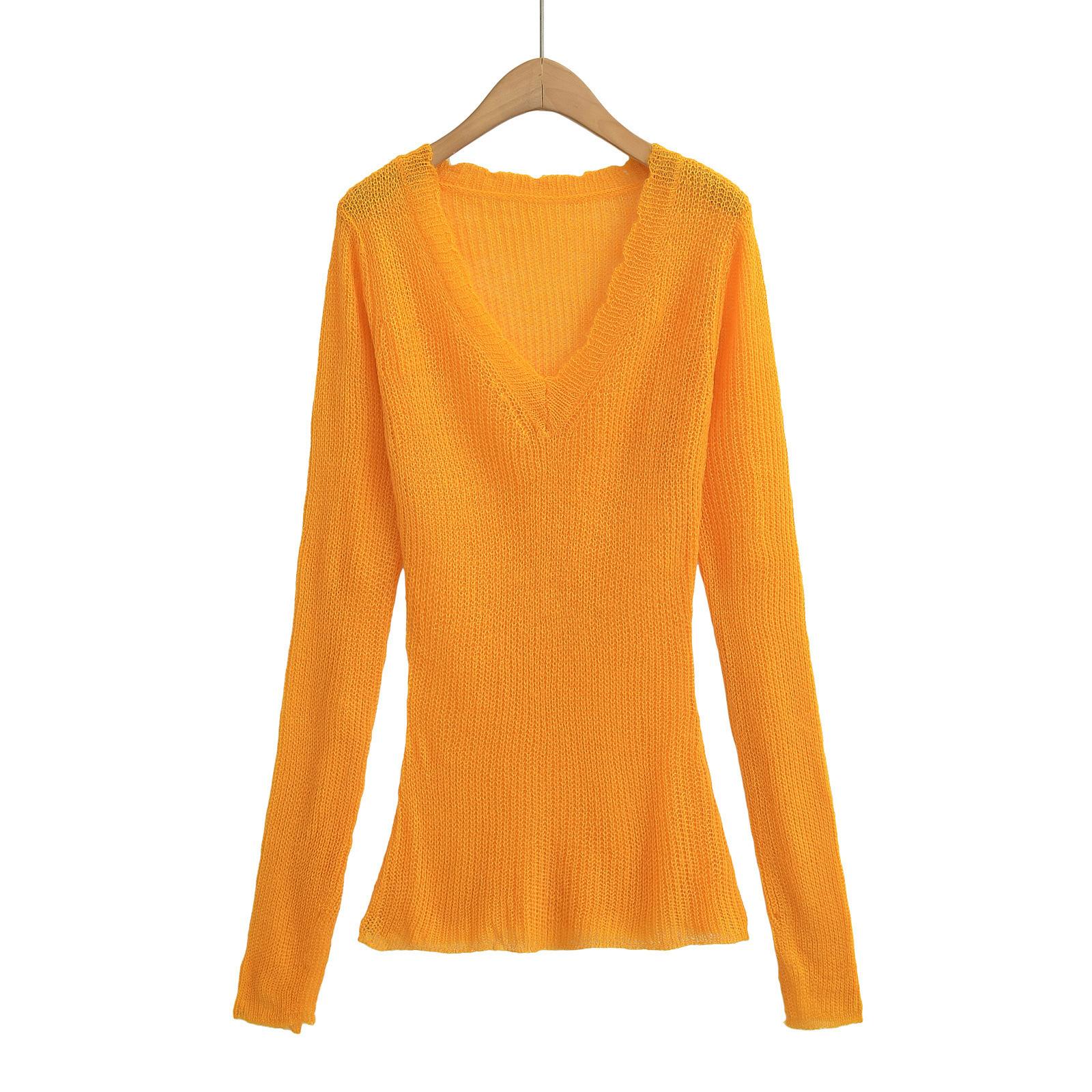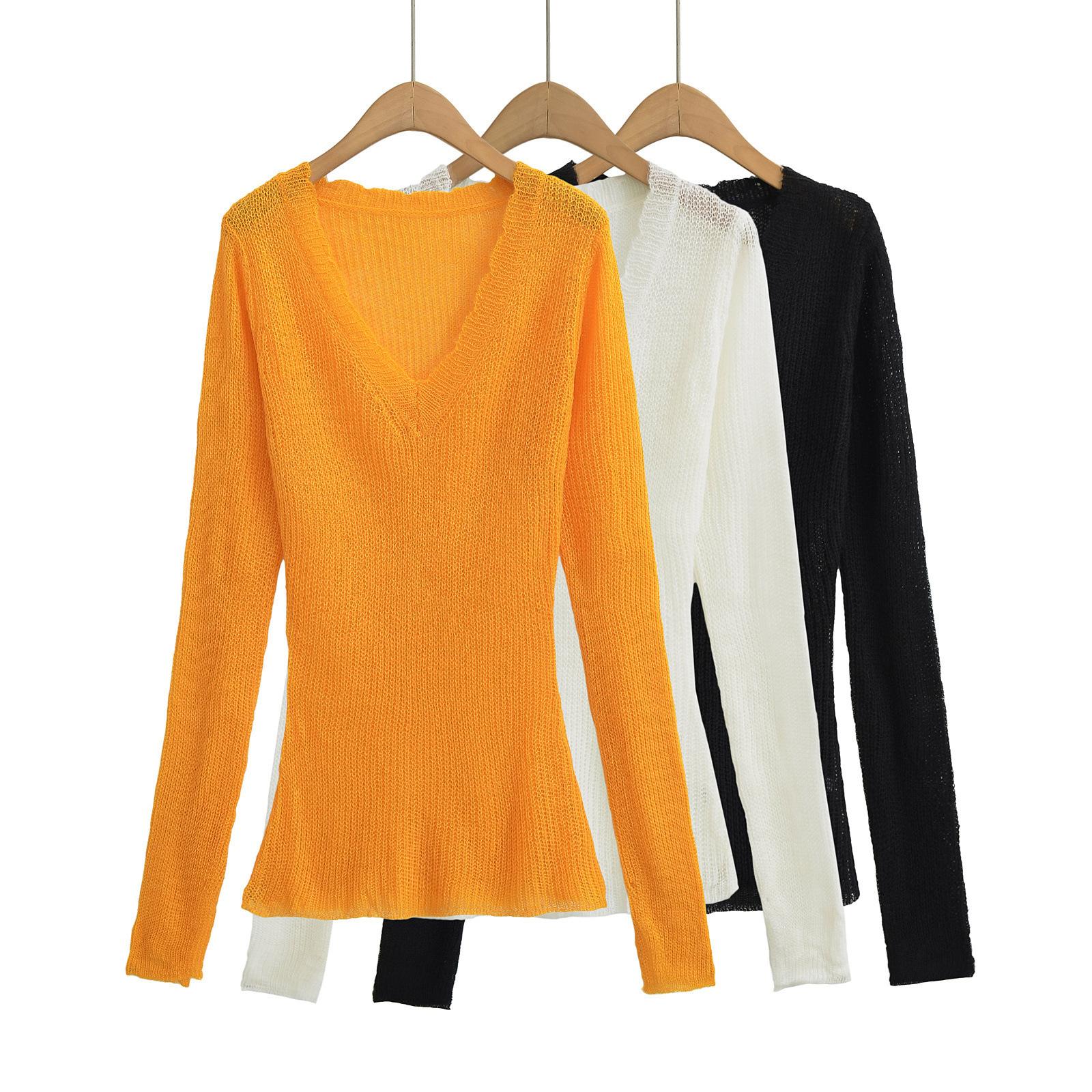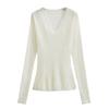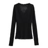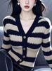 Suéter Elegante de Punto Calado Sexy de Cuello en V Estilo Francés para Mujer Top Corto Ajustado de Chica Caliente Suéter Fino