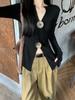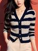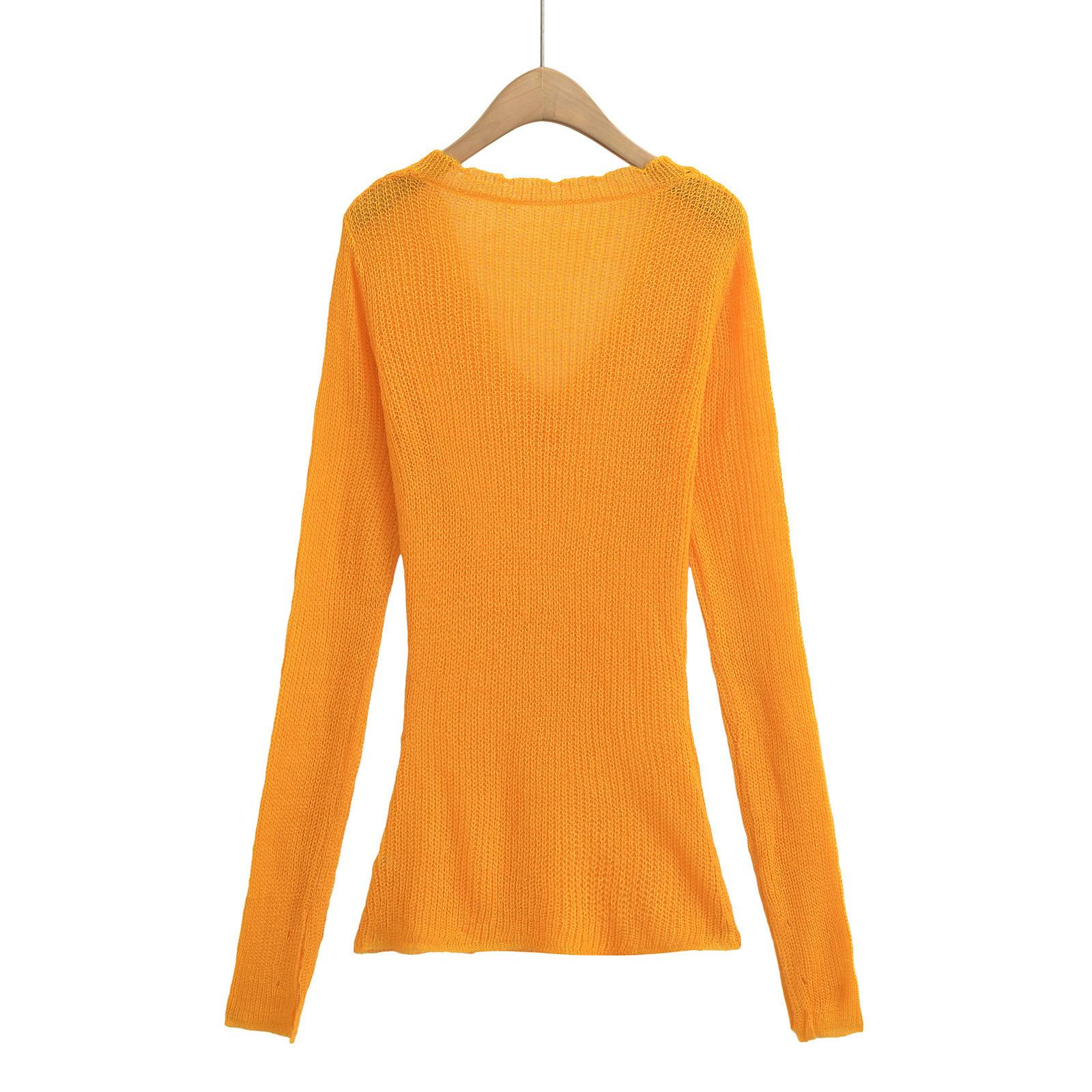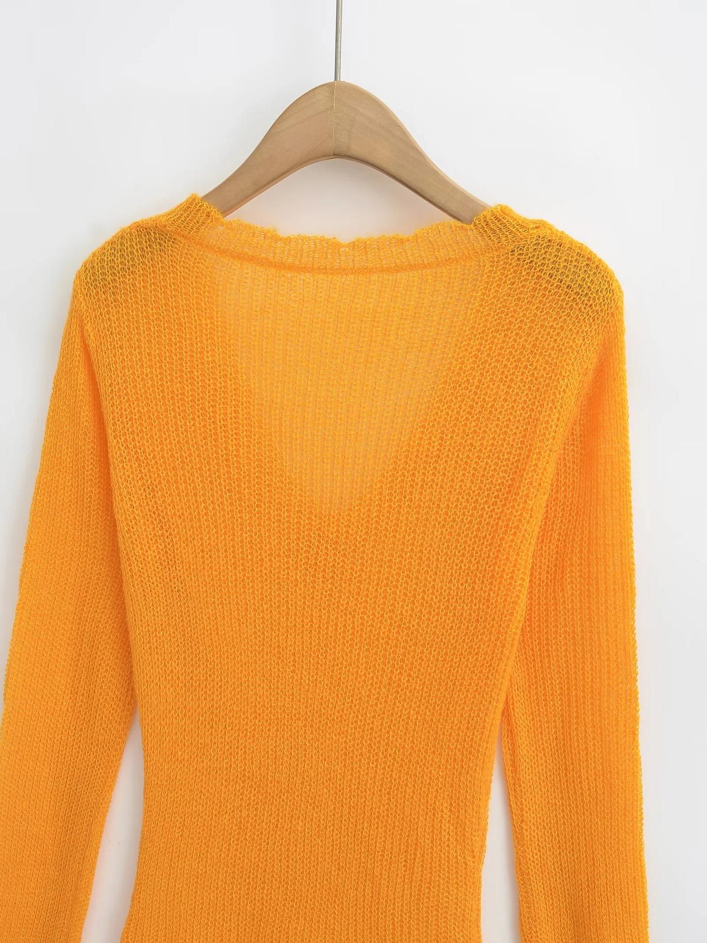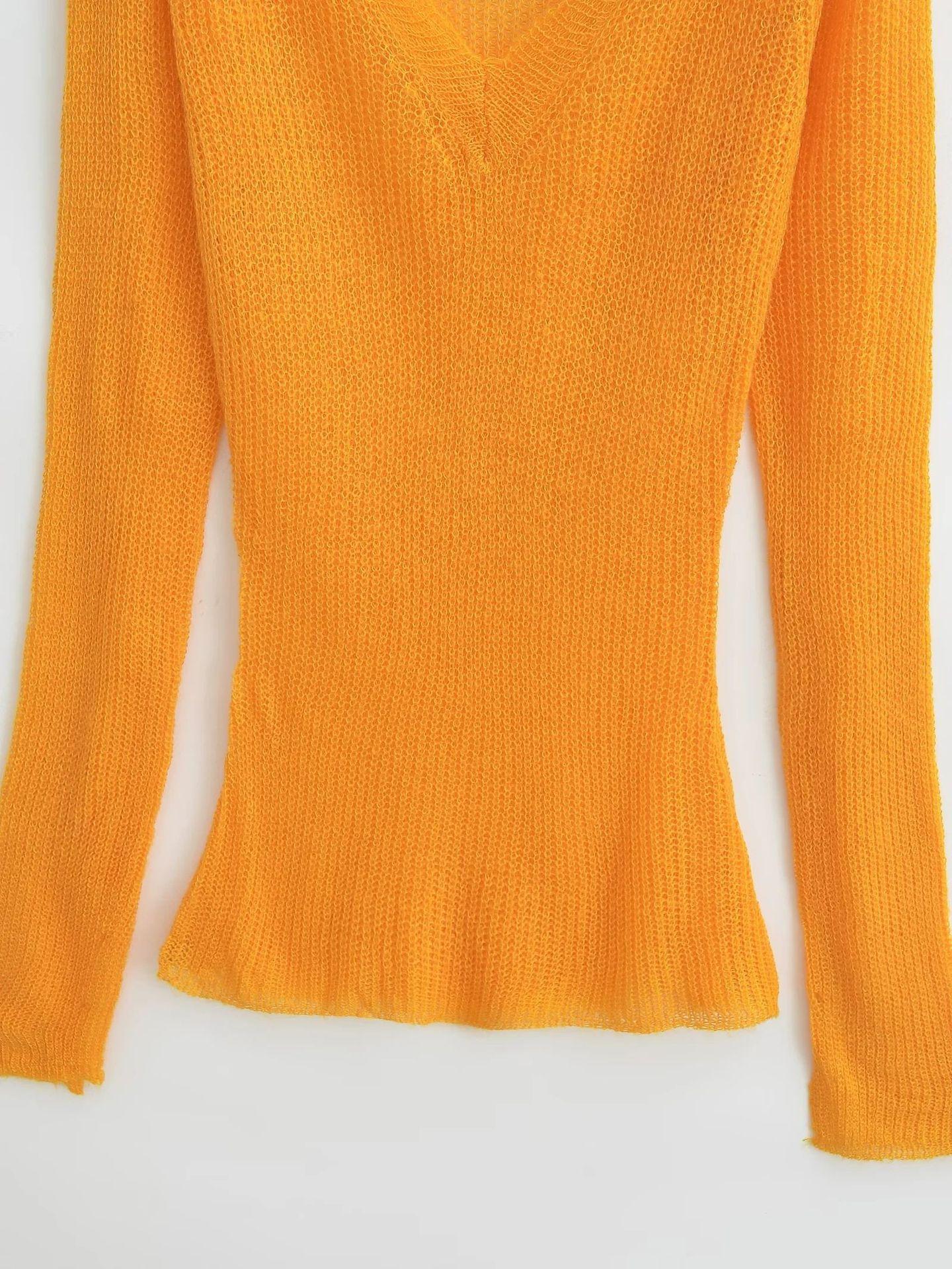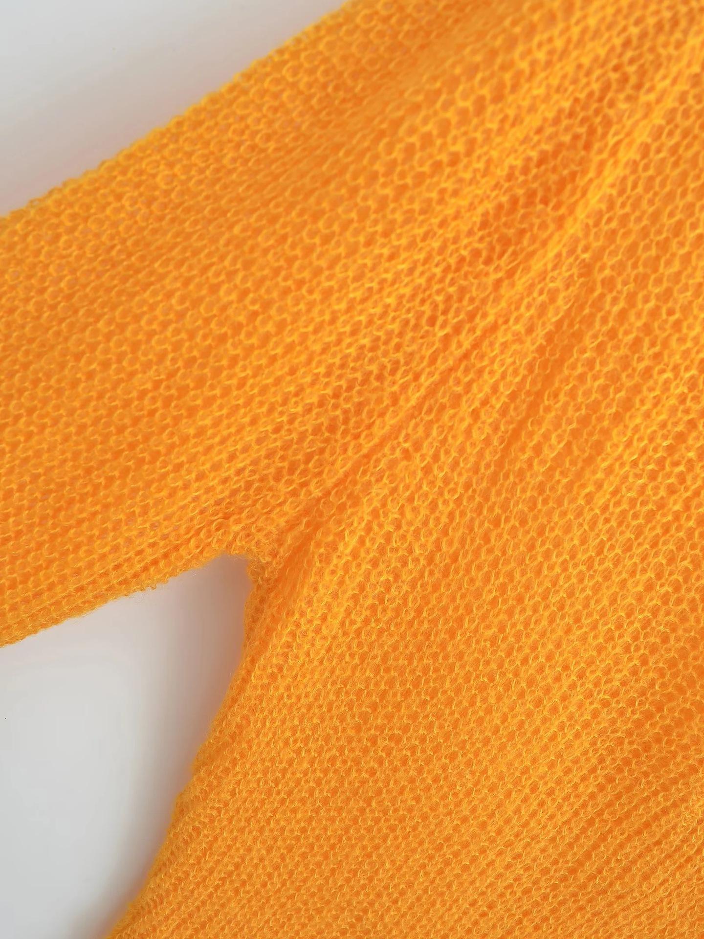 Suéter Elegante de Punto Calado Sexy de Cuello en V Estilo Francés para Mujer Top Corto Ajustado de Chica Caliente Suéter Fino