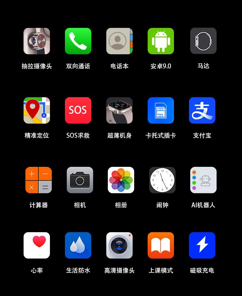 Take photos, Step counting, Heart rate monitoring, Blood oxygen detection