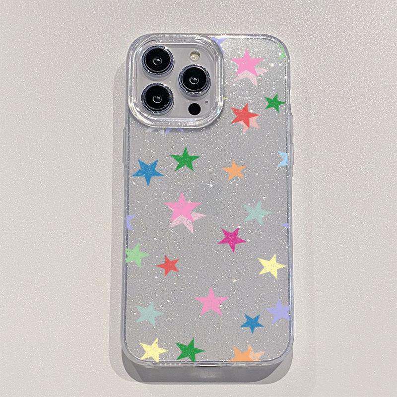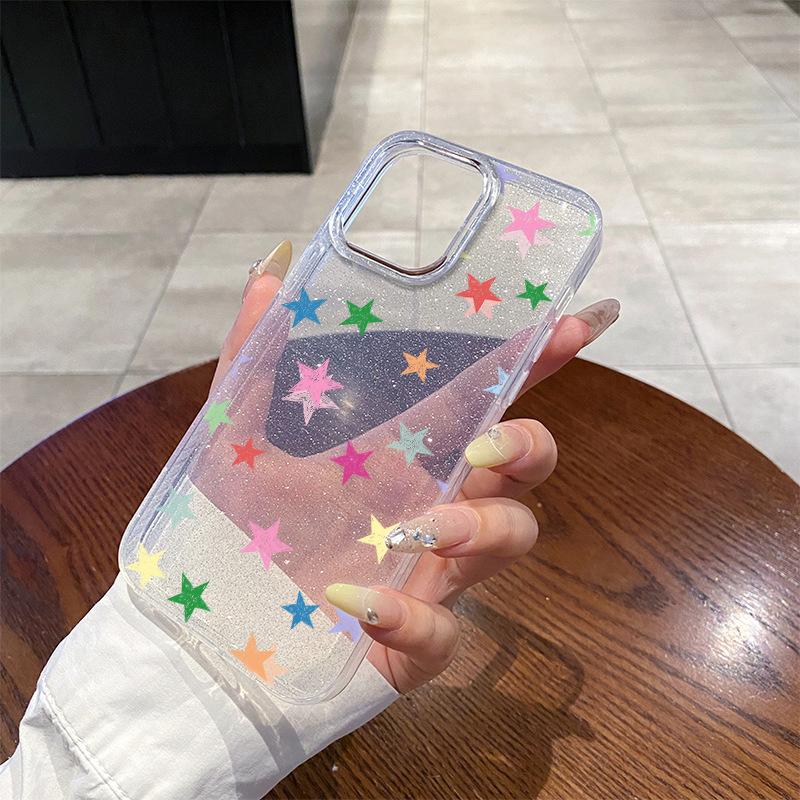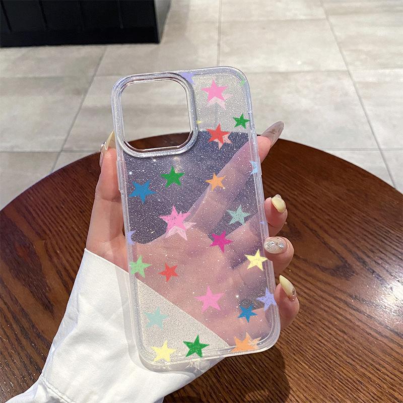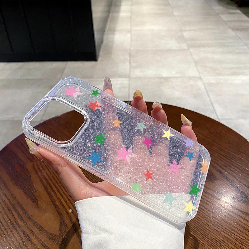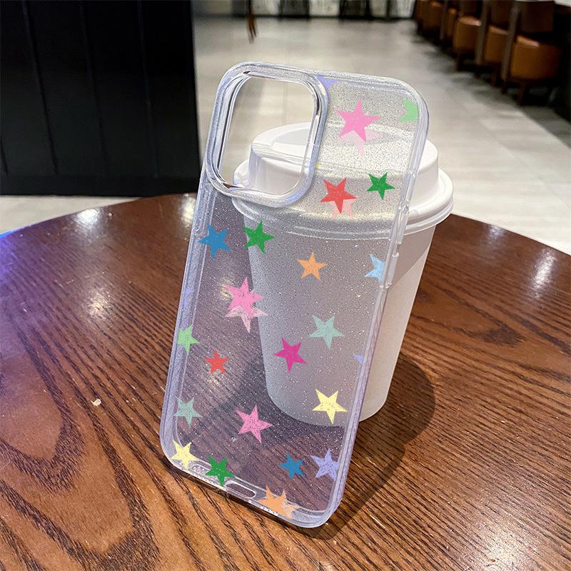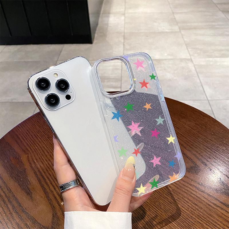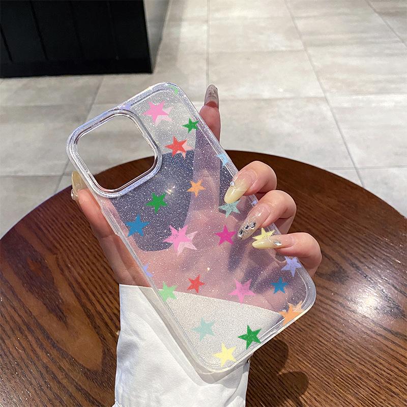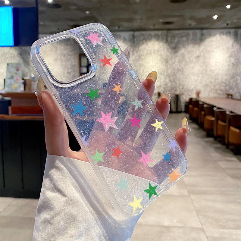 Funda para Teléfono Xiaohongshu Simple Transparente con Glitter para iPhone 13 Estrella 16Promax Anticaídas Apple 15 Funda Protectora