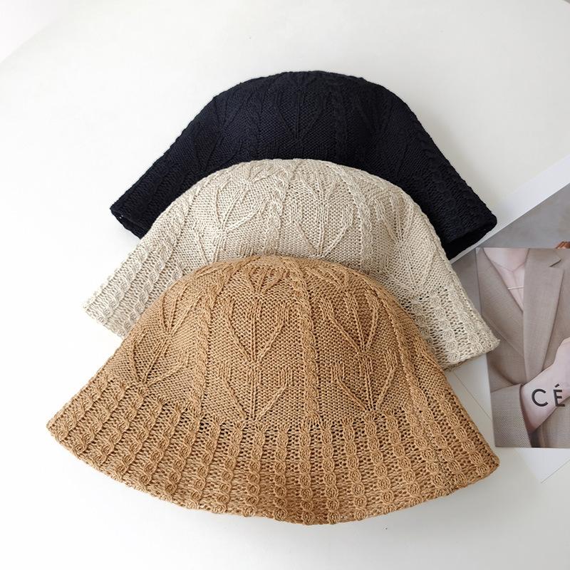 Sombrero de Cubo de Ala Pequeña Estilo Coreano para Mujer Primavera y Verano Estilo Japonés Cabeza Grande Sombrero de Pescador Tejido Muestra la Cara Pequeño Sombrero de Sombra Moda