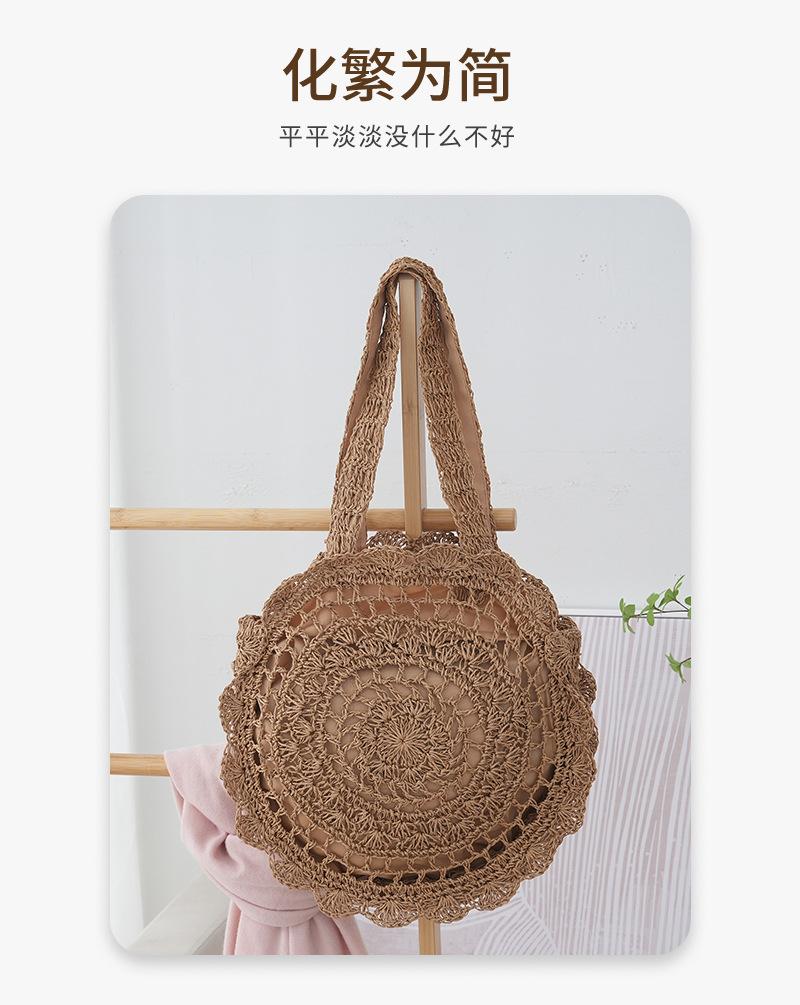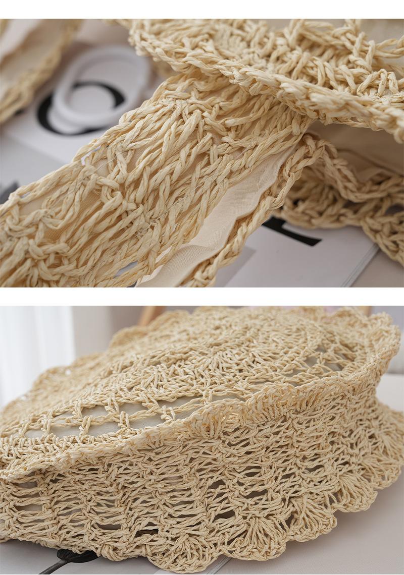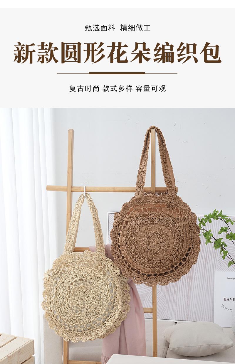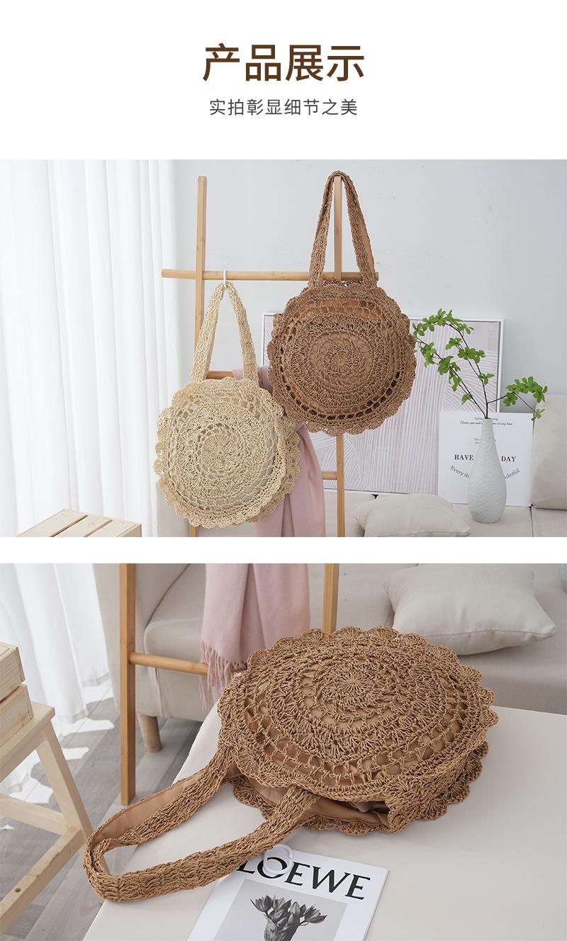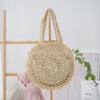 Bolso de Hombro de Flores Estilo Coreano Redondo de Gran Capacidad Calado de Paja Bolso de Paja Versátil Bolso de Playa Bolso Tejido Vacaciones