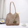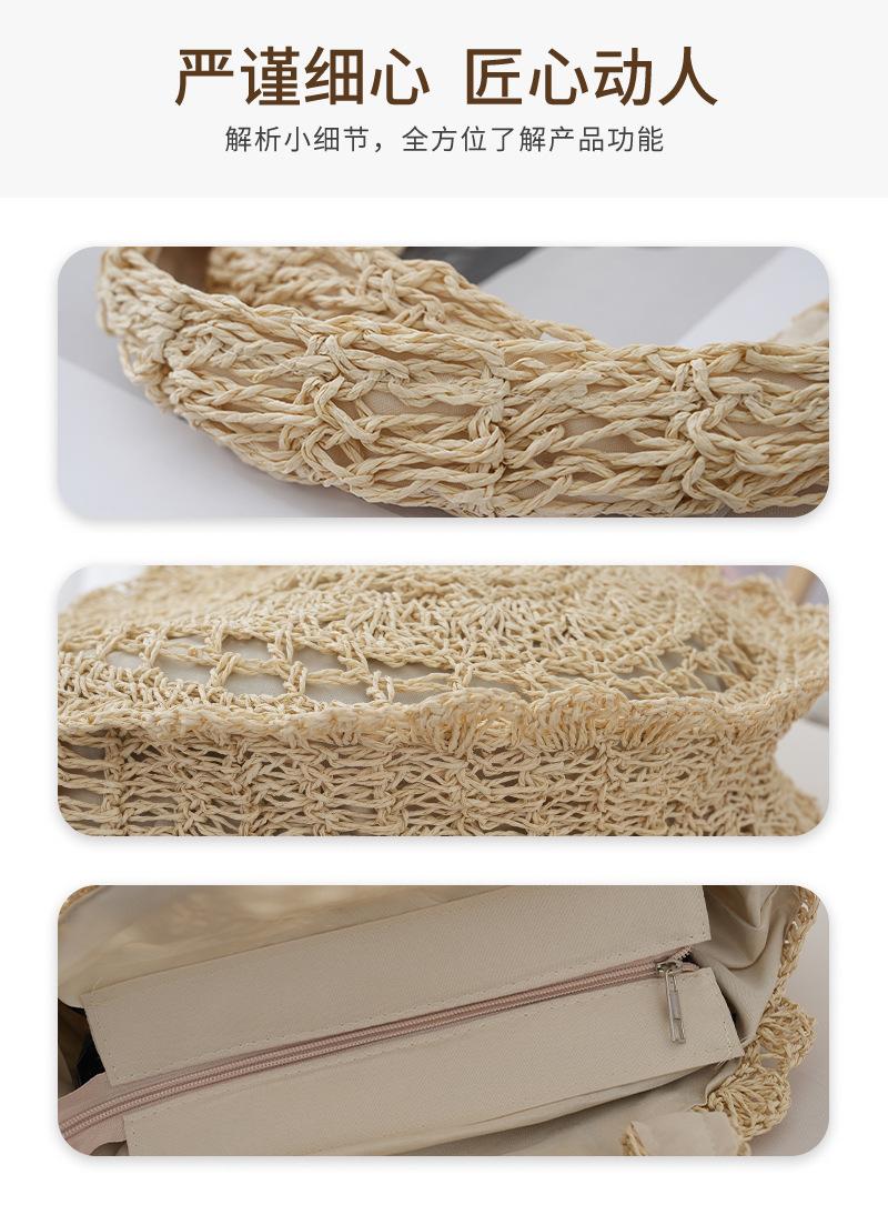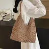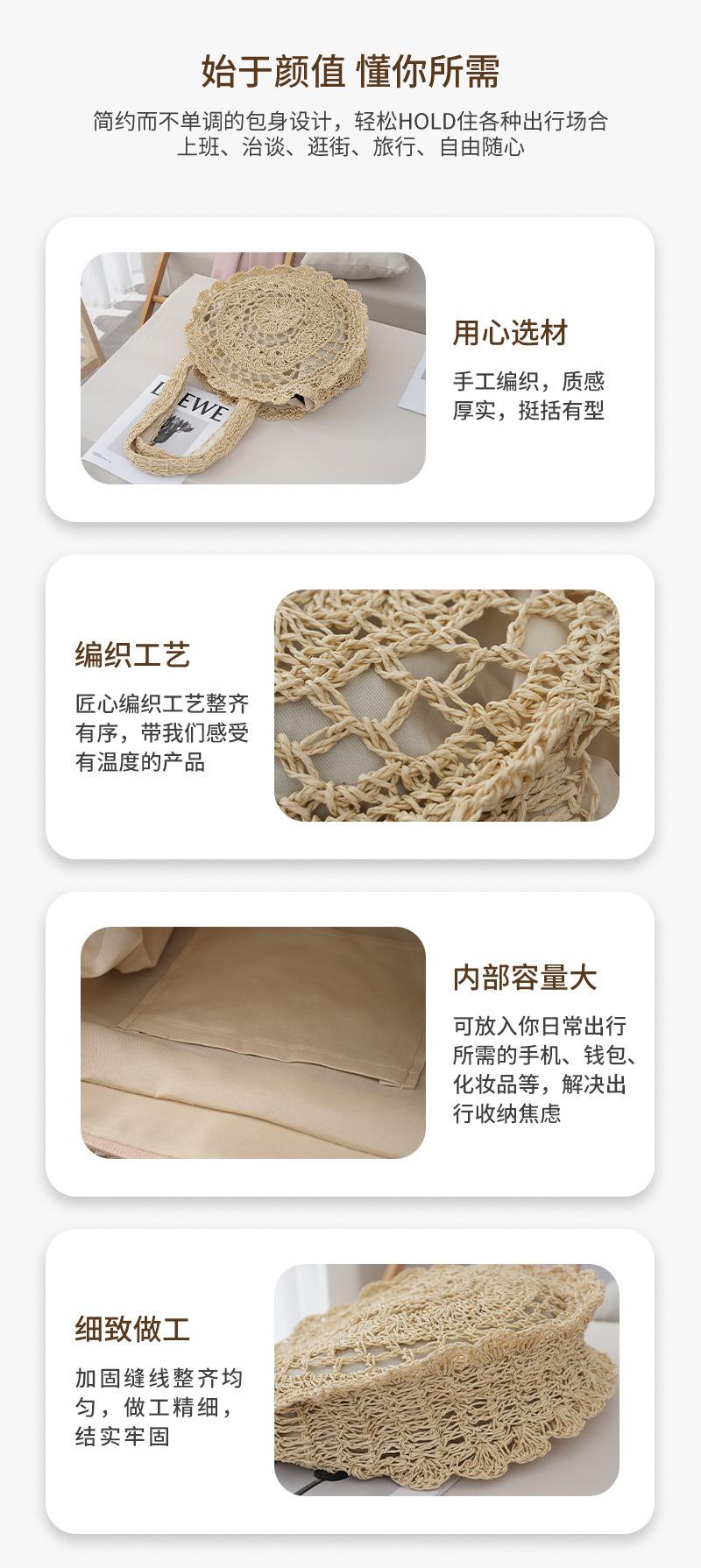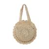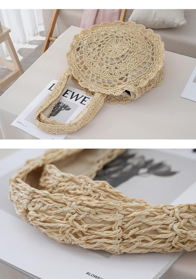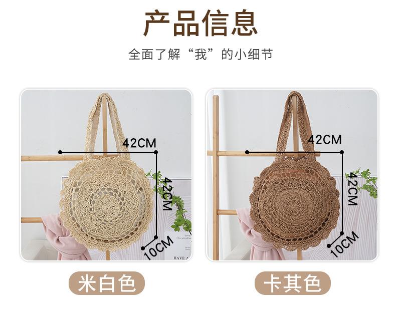 Bolso de Hombro de Flores Estilo Coreano Redondo de Gran Capacidad Calado de Paja Bolso de Paja Versátil Bolso de Playa Bolso Tejido Vacaciones