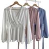 2025 Principios de Primavera Nuevo Elegante Camisa de Gasa con Cuello en V para Mujer Súper Hada Dulce Elegante Cintura Entallada con Cordones Camisa de Manga Larga Top