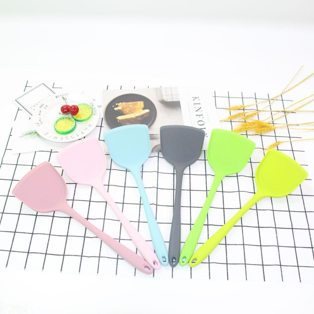 Cuchara Espátula de Silicona para Hogar para Cocinar Frito Sartén Antiadherente Espátula para Saltear Utensilios de Cocina de Silicona Integrados