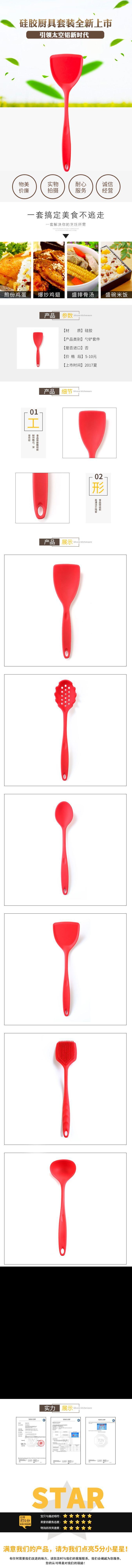 Suministro de fábrica juego de utensilios de cocina de silicona sartén antiadherente espátula espátula juego de seis piezas herramientas de cocina al por mayor