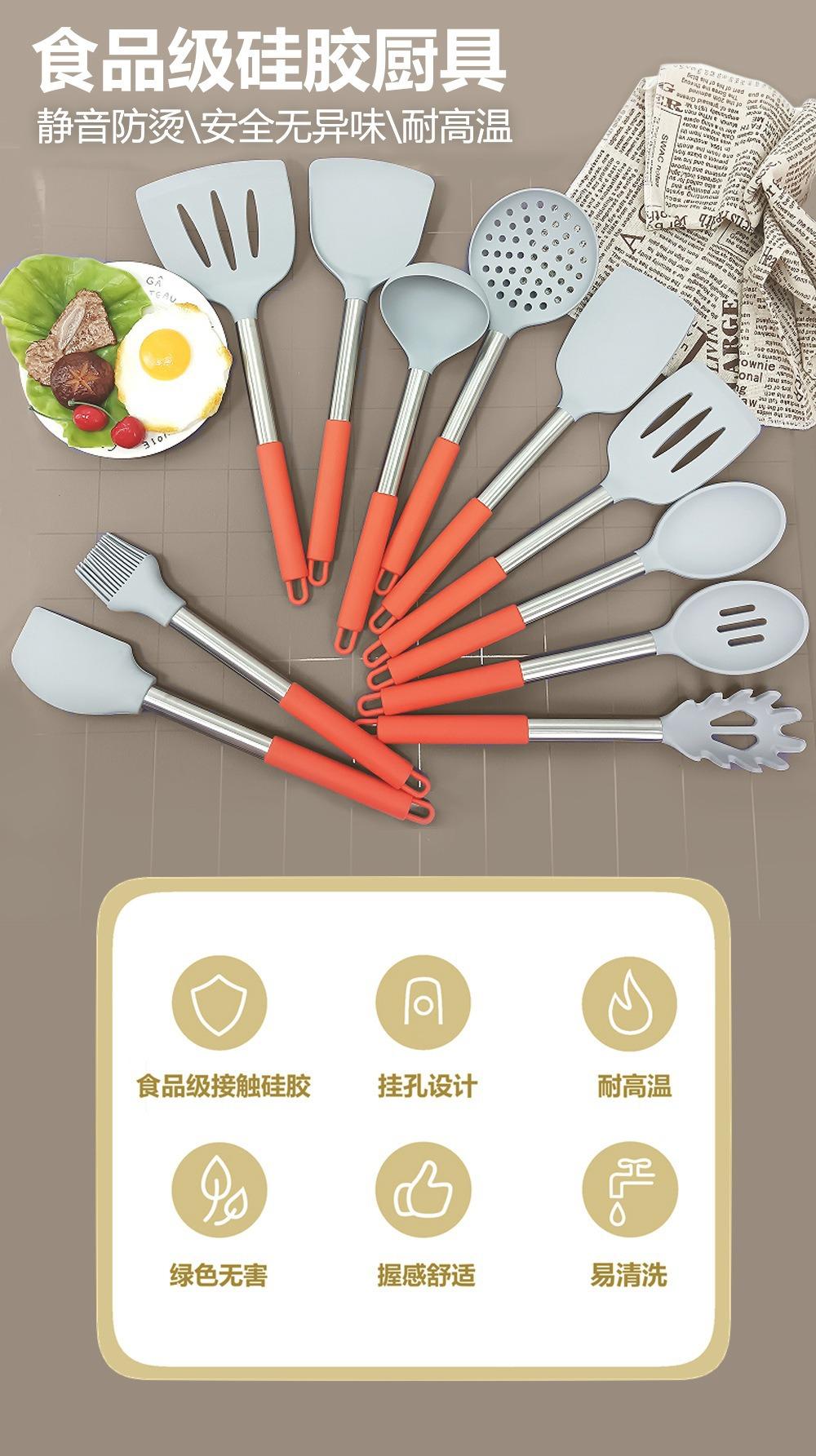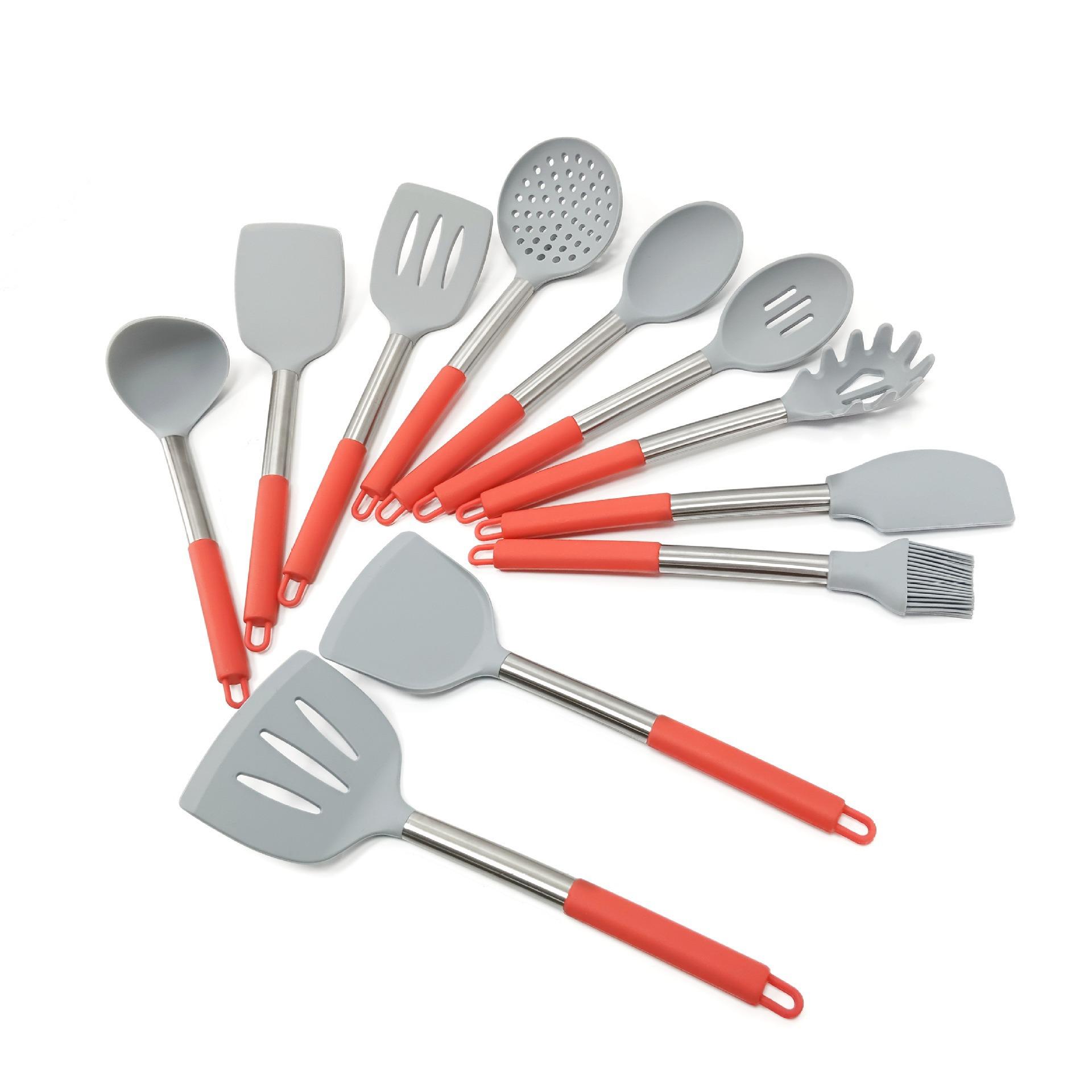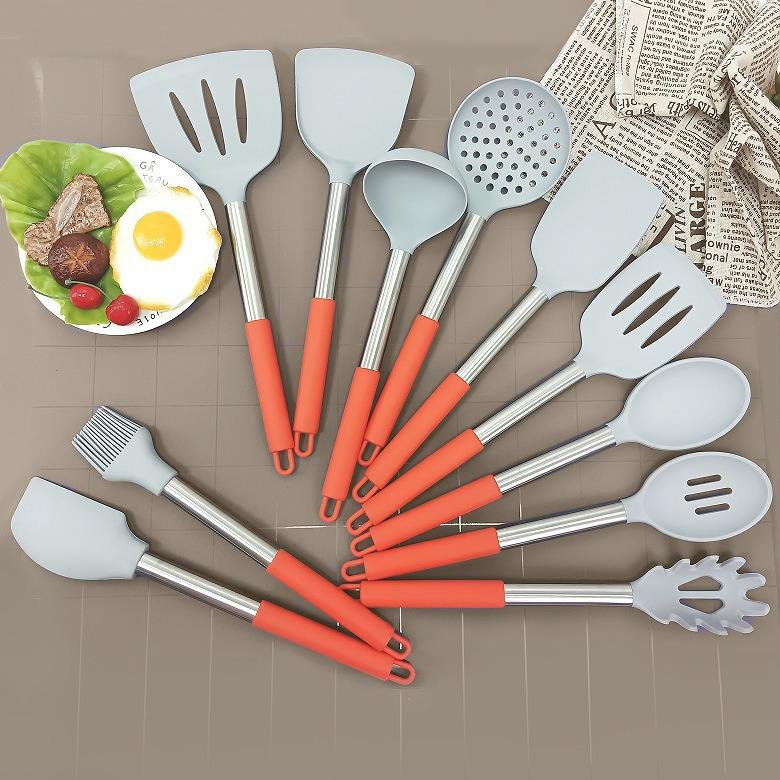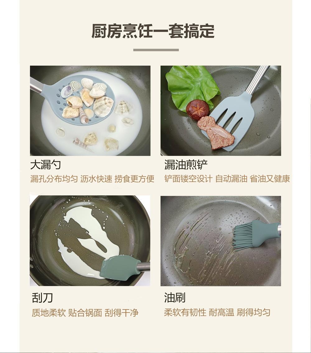 Sartén antiadherente resistente a altas temperaturas espátula para cocinar cuchara para sopa cucharón mango con funda de plástico de silicona juego de utensilios de cocina herramientas para cocinar